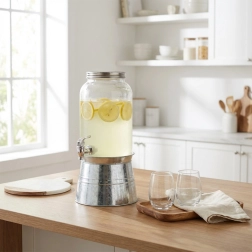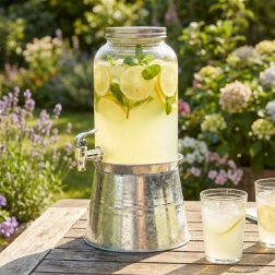 Dávkovač je vyroben z kvalitního silnostěnného skla s hladkým povrchem, kohoutek umožňuje plynulé a čisté nalévání. Skvěle se hodí pro zahradní party, grilování, rodinné oslavy i do kaváren a barů, kde stylově vystaví limonády, ledový čaj či ovocné vody.