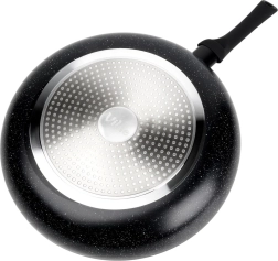 Elegantní pánev s granitovou povrchovou úpravou v černém provedení se stane spolehlivým pomocníkem pro smažení i dušení. Robustní hliníkové tělo zajišťuje rychlý přenos tepla a šetří energii, nepřilnavý povrch umožní vařit s minimem tuku a snadno ji vyčistíte i v myčce.