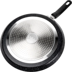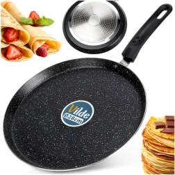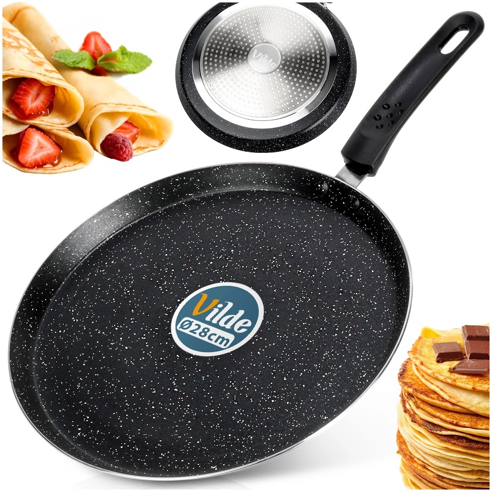 Lehká a odolná palačinková pánev o průměru 28 cm s granitovou nepřilnavou povrchovou úpravou pro nízkotučné smažení. Nabízí rychlý a rovnoměrný rozvod tepla, ergonomickou rukojeť, která se nezahřívá, a je vhodná na všechny typy sporáků včetně indukce. Snadno se čistí a je vhodná do myčky.