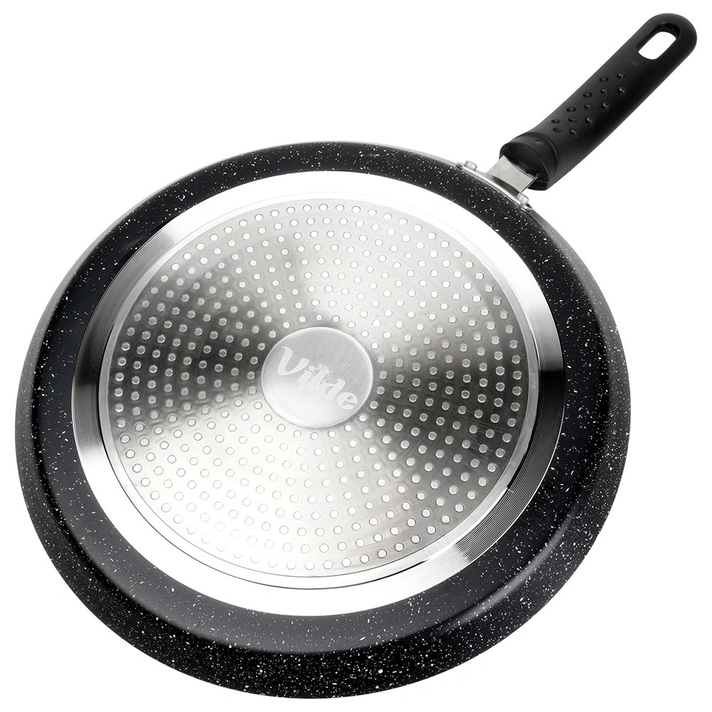 Indukční dno a kvalitní hliníkové tělo přenášejí teplo rychle a rovnoměrně. Vhodná pro plyn, elektřinu, sklokeramiku i indukci – bez horkých míst.