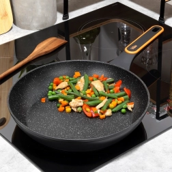 Kvalitní granitová pánev o průměru 28 cm z odlévaného hliníku pro každodenní vaření. Nabízí nepřilnavý povrch pro zdravé smažení s minimem tuku, rychlou a rovnoměrnou distribuci tepla a ergonomickou, neklouzavou rukojeť. Vhodná pro všechny typy sporáků včetně indukce a myčky nádobí.