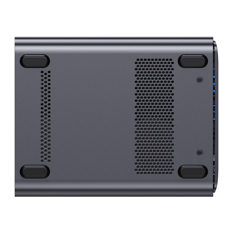 - USB4 (Alt DP 2.0) × 1, HDMI 2.1 FRL × 1, OCuLink × 1, 10 GbE (RJ45) × 1, 5 GbE (RJ45) × 1, USB 3.2 Gen 2 × 1, USB 2.0 × 1