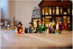 Součástí je 6 minifigurek a figurka Thackeryho Binxe (kočka) a řada tematických doplňků: zelený blesk, dýňový kyblík, koště, mop a vysavač pro filmové scény. Geniální brána/hřbitov poslouží jako podstavec pro vystavení celé sestavy.
