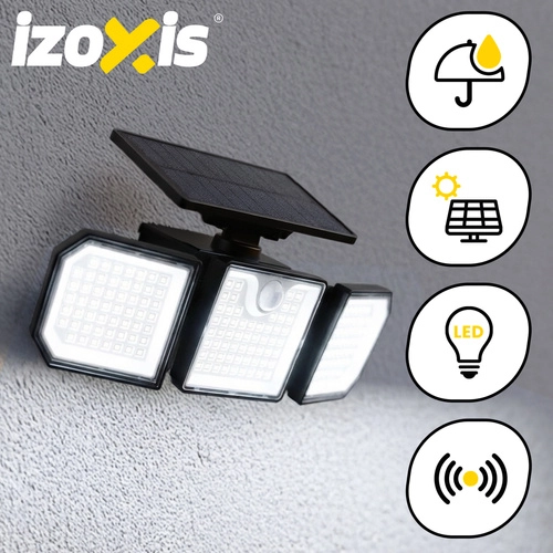 Výkonné solární světlo IZOXIS s 167 LED a svítivostí 500 lm spolehlivě osvítí zahradu, vchod, fasádu i příjezd. Díky solárnímu panelu 5,5 V / 1,5 W a baterii 1800 mAh se nabíjí během dne a po setmění svítí automaticky. Senzor pohybu, senzor soumraku a 3 režimy zajistí světlo jen tehdy, když je potřeba. Odolnost IP65 a boční reflektory zaručují široký záběr a dlouhou životnost bez kabelů a nákladů na elektřinu.