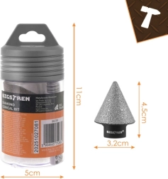 Univerzální diamantový kuželový fréz BIGSTREN je určený pro precizní vrtání a rozšiřování otvorů v grese, keramice, přírodním kameni, žule, mramoru i betonu. Díky vakuově pájeným diamantům poskytuje čisté hrany bez vyštípnutí, dlouhou životnost a stabilní práci. Rozsah 2–35 mm pokryje většinu instalačních a montážních aplikací, závit M14 je kompatibilní s úhlovými bruskami.