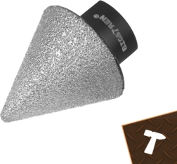 Rychlé, čisté a kontrolované vrtání v tvrdých i velmi tvrdých materiálech. Kuželový tvar umožňuje vrtání, korekci, frézování a plynulé zvětšování otvorů jediným nástrojem. Vakuově pájené diamanty po celé pracovní ploše zajišťují vysokou rychlost a hladký povrch bez prasklin.