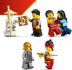 Užijte si nostalgii s výroční edicí LEGO NINJAGO Kovárna Čtyři zbraně, inspirovanou pilotním dílem oblíbeného seriálu. Propracovaný model s tradiční tmavou střechou, červenými a zlatými dekoracemi a kamenným základem ožívá díky otevírací konstrukci, která odhaluje ložnici, kovárnu a další zákoutí plná tematických doplňků.