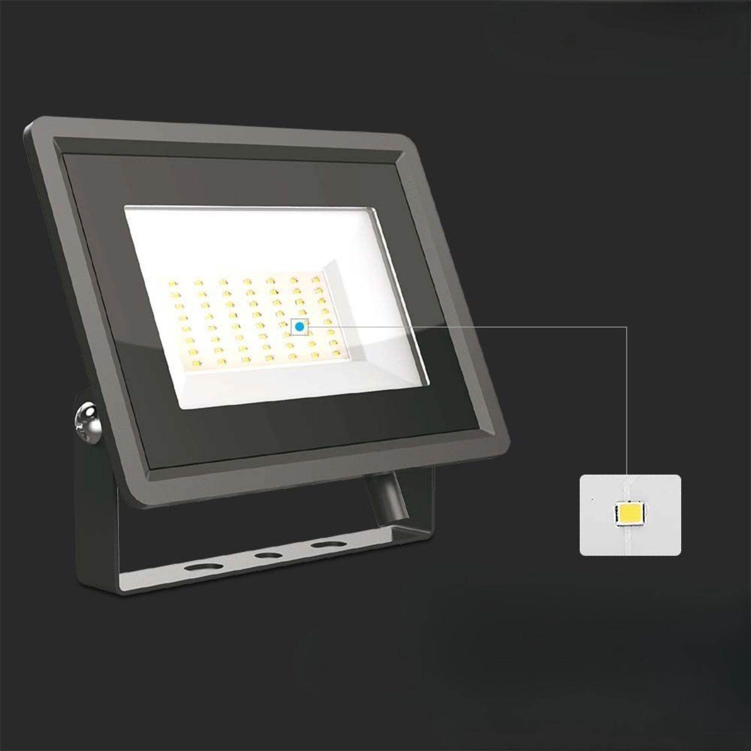 Výkonný LED reflektor 50 W je vybaven pokročilým SMD LED čipem a integrovaným IC driverem, který zajišťuje stabilní proud bez nutnosti externího napájecího zdroje. Díky neutrální bílé (4000 K) poskytuje přirozené a komfortní osvětlení vhodné pro komerční i průmyslové využití.