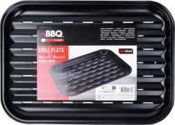 Rozměry 34,5 × 24 × 2 cm pasují na většinu grilů a plech lze použít i v pečicí troubě.