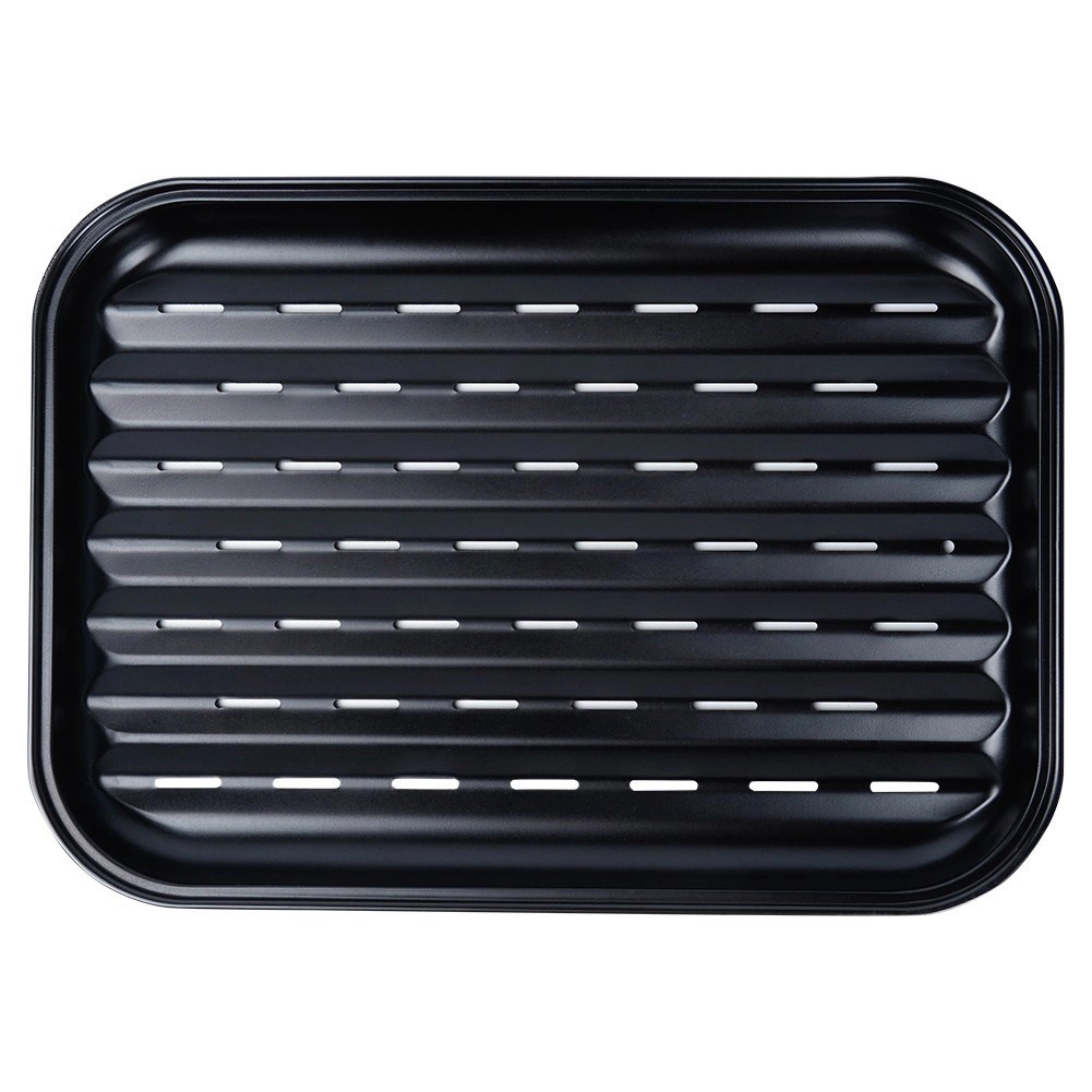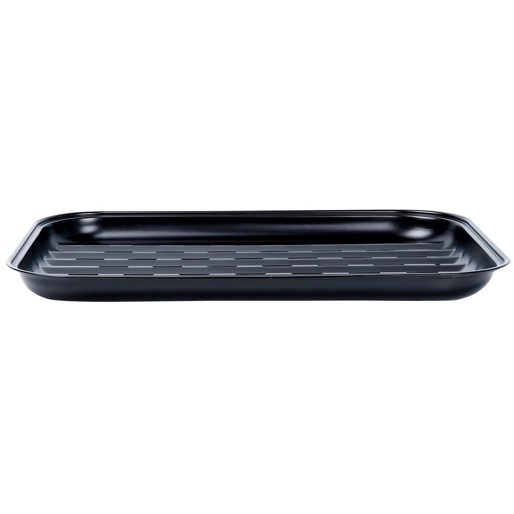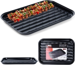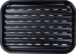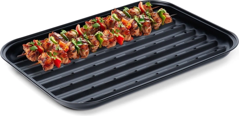Robustní plech o rozměrech 34,5 × 24 × 2 cm je vyroben z kvalitní oceli s nepřilnavou úpravou, takže se jídlo nepřichytává a čištění je snadné. Díky perforaci a žebrování tuk efektivně odtéká a potraviny se nepřipravují ve vlastním výpeku – dosáhnete křupavého povrchu a výrazné chuti.