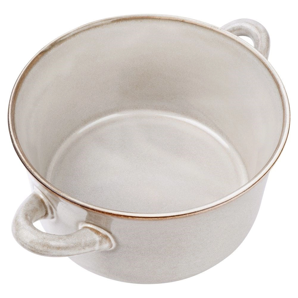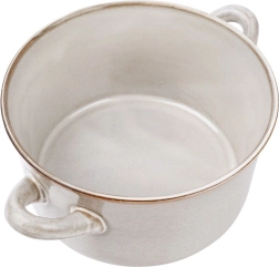 Tato univerzální miska s praktickými postranními uchy je skvělou volbou pro každodenní stolování i slavnostní servírování. Objem 600 ml a široký okraj zajišťují pohodlné nabírání i nošení přímo od sporáku na stůl. Odolná glazura v jemném šedém odstínu dodá vaší kuchyni moderní, přesto útulný vzhled.