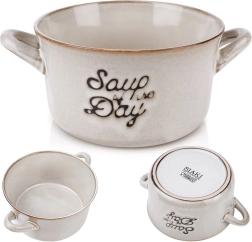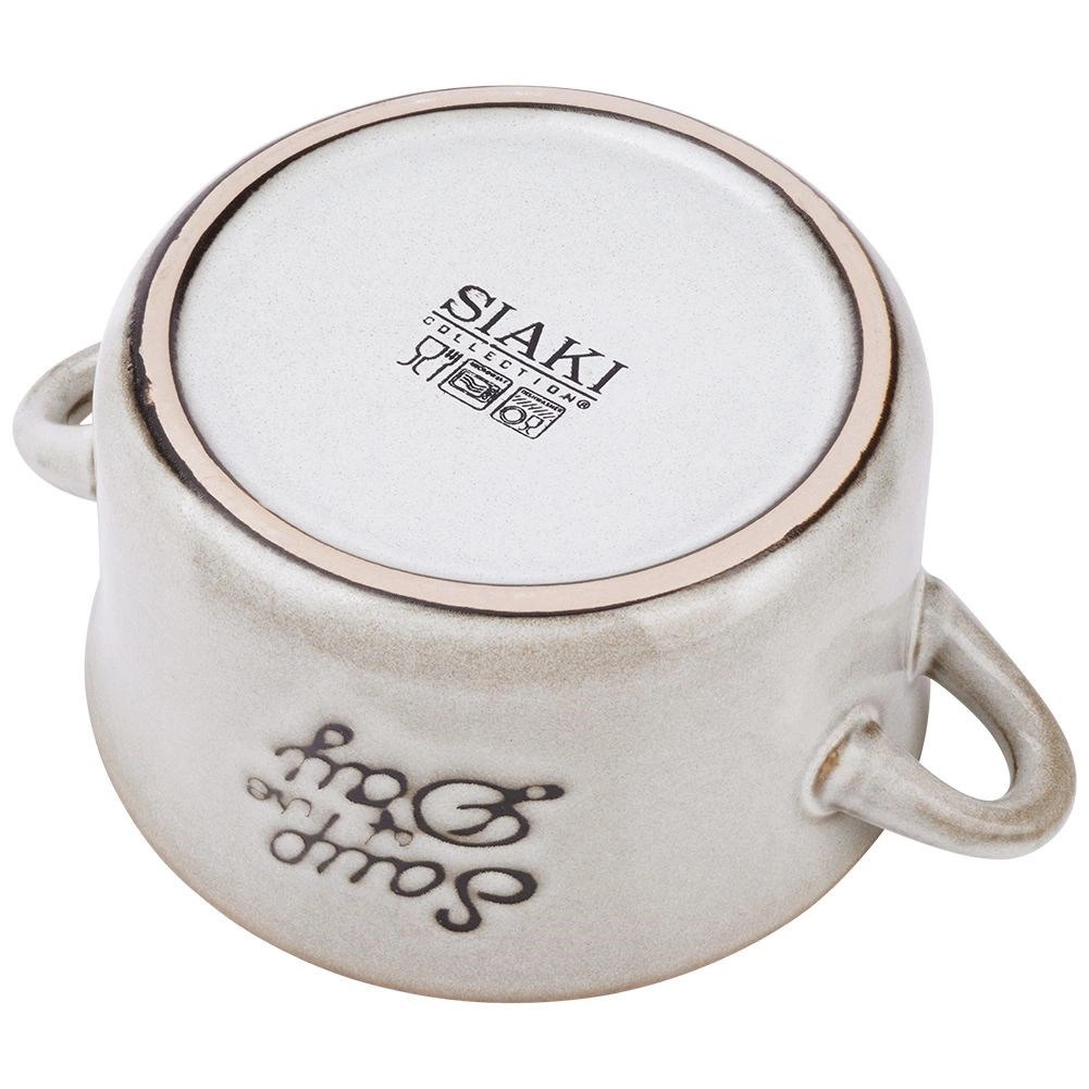 Praktická keramická polévková miska o objemu 600 ml se dvěma uchy pro pohodlné servírování. Ideální na polévky, vývary a krémy, ale i na cereálie, jogurt či ovoce. Kvalitní keramika v elegantní šedé, vhodná do myčky i mikrovlnné trouby.