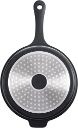 Hluboká pánev GRANDE o průměru 28 cm a objemu 3 l z odlévaného hliníku pro každodenní vaření. Má nepřilnavý žulový povrch Pfluon Granit bez PFOA a PTFE, je vhodná na všechny typy sporáků včetně indukce, do trouby i myčky. Robustní jednolitá konstrukce s pohodlnou rukojetí zajišťuje rovnoměrné rozložení tepla a rychlé, úsporné smažení a dušení.