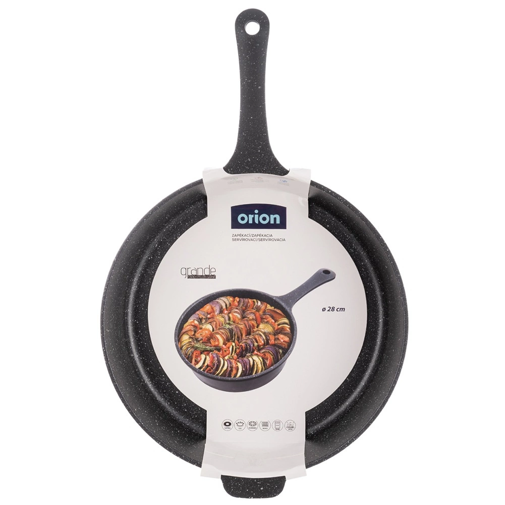 Pánev je kompatibilní se všemi typy vařičů včetně indukce, lze ji mýt v myčce a použít i v troubě – ideální pro zapékání a rovnou servírování. Jednodílné provedení s pevnou rukojetí přináší dlouhou životnost, stabilitu a bezpečný úchop.