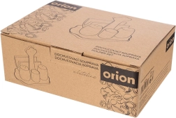 Praktický stojan s centrálním madlem udrží solničku, pepřenku, pohárek na párátka i ubrousky přehledně na svém místě a umožní jejich snadné přenášení.