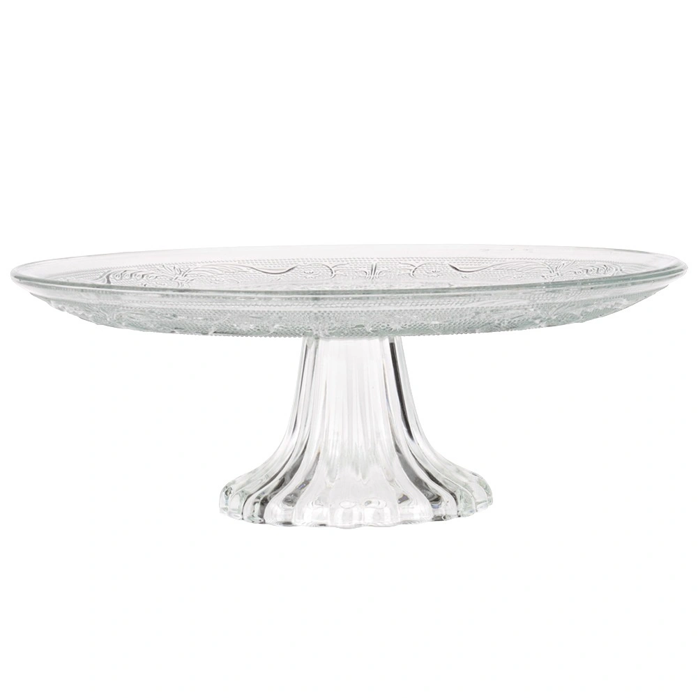 Skleněná patera na nožce je ideální pro servírování a prezentaci dortů, koláčů, zákusků i slaných pochoutek. Klasický kulatý tvar s dekorativním reliéfem dokonale ladí s každou tabulí a podtrhuje vzhled podávaných dobrot.