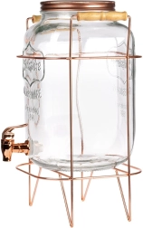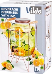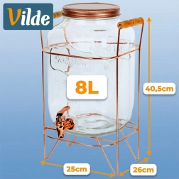 Skleněný dávkovač nápojů s objemem 8 l je skvělý pro rodinné oslavy, grilování i restaurace. Zvýšený stojan umožňuje pohodlné nalévání do sklenic, kohoutek s těsněním zajišťuje plynulý tok a šroubovací víko udržuje nápoj čistý a svěží. Transparentní sklo s reliéfním nápisem zvýrazní barvu limonád a ovocných nápojů.