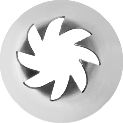 Univerzální ocelová zdobicí špička ve tvaru květu pro snadné a přesné zdobení dortů, koláčů a cupcaků. Díky odolné konstrukci ze nerezové oceli vytváří efektní květinové vzory, pasuje na všechny cukrářské sáčky a je vhodná do myčky. Skvělá volba pro začátečníky i profesionály.