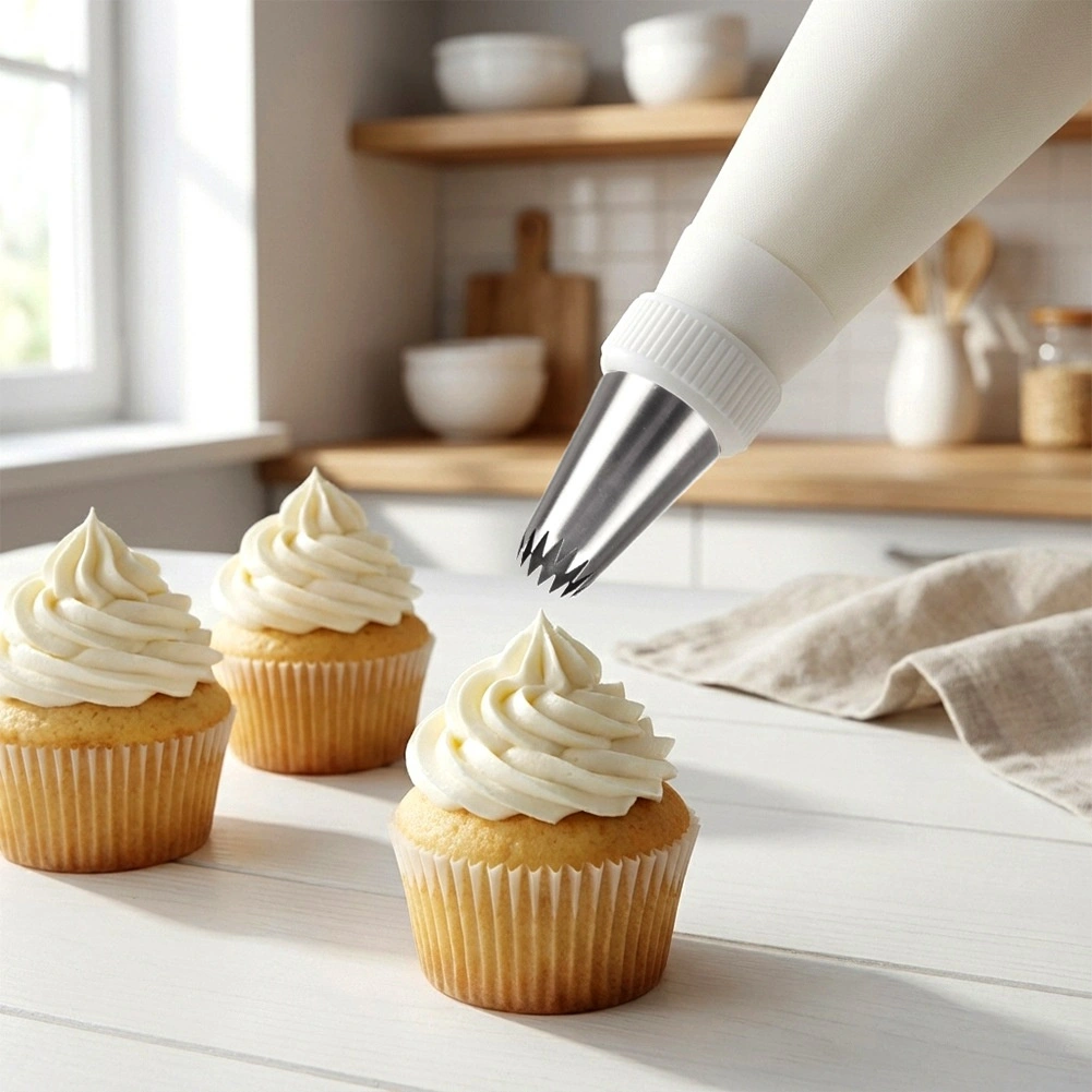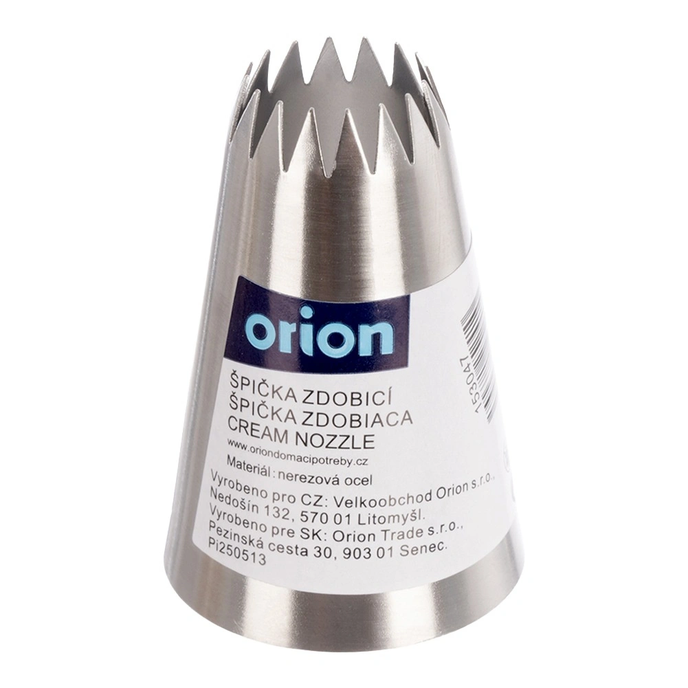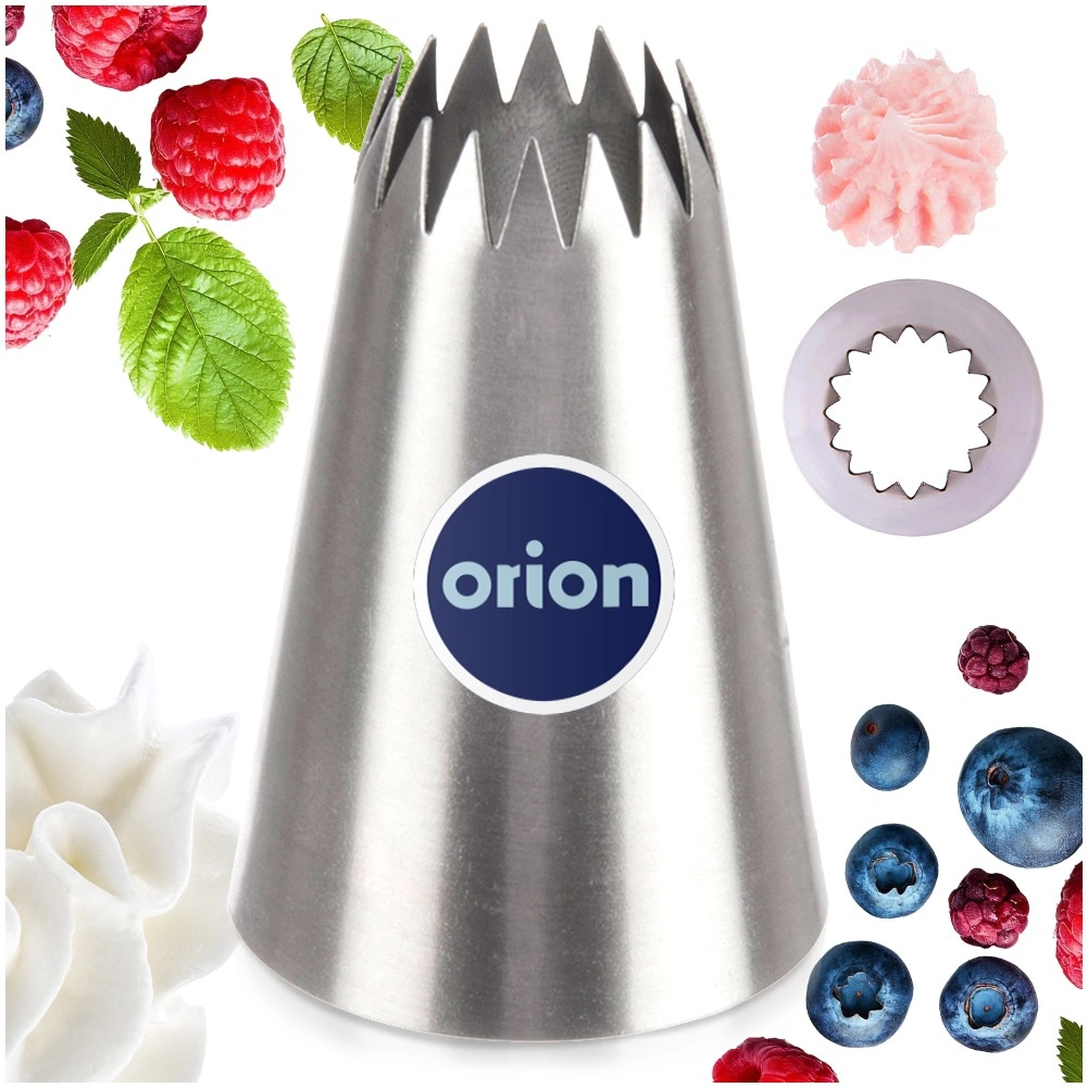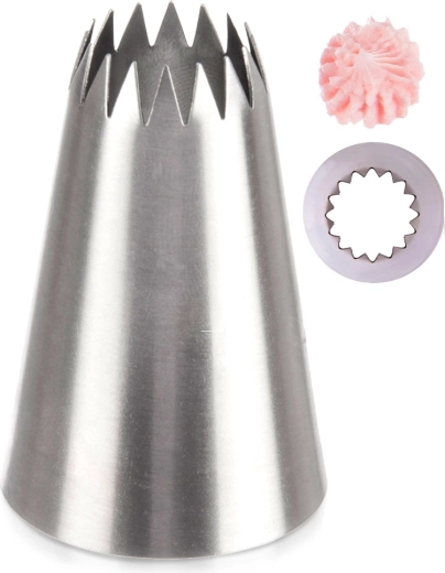 Tato kvalitní nerezová tylka s tvarem otevřené hvězdy umožní vytvářet dekorace s výraznými rýhami – ideální pro krémy, máslové polevy i šlehačku. Díky univerzální základně pasuje na většinu jednorázových i opakovaně použitelných cukrářských sáčků a zajistí přesný, plynulý výstup krému.