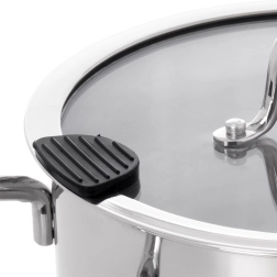 Skleněná poklice má integrovanou výlevku a otvory pro páru, takže pohodlně slijete vodu z těstovin či zeleniny přímo z hrnce. Silikonové prvky zvyšují bezpečnost a komfort při cezení. Hrnec je vhodný pro plyn, elektřinu, keramiku i indukci, a také do trouby do 200 °C. Po použití jej snadno umyjete v myčce.