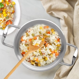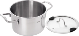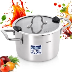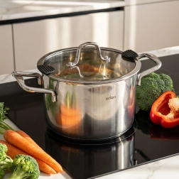 Praktický nerezový hrnec o objemu 2,3 l se skleněnou poklicí je ideální pro každodenní vaření, dušení i pečení. Má vícevrstvé dno pro rovnoměrný rozvod tepla, poklici s výlevkou a silikonovými prvky pro snadné cezení a je vhodný na všechny typy sporáků včetně indukce i do trouby až do 200 °C. Snadno se udržuje a lze jej mýt v myčce.