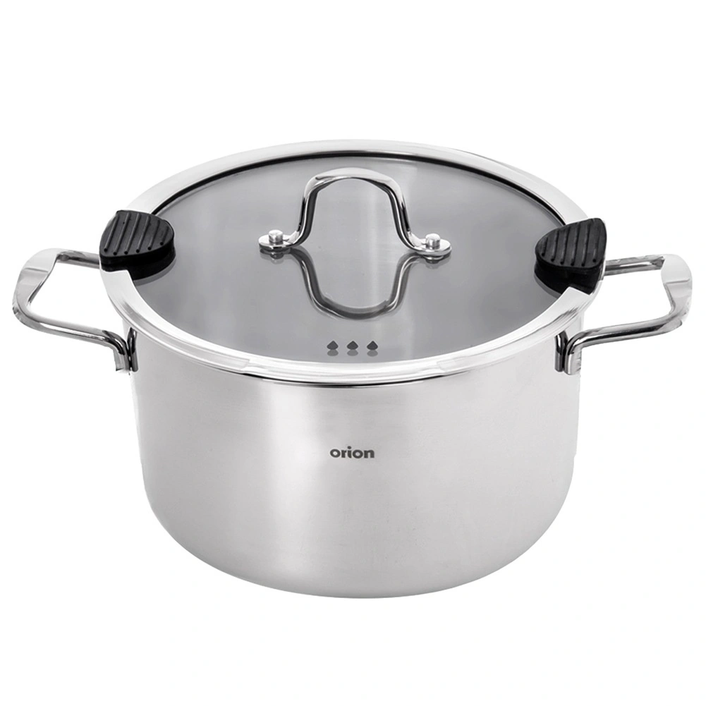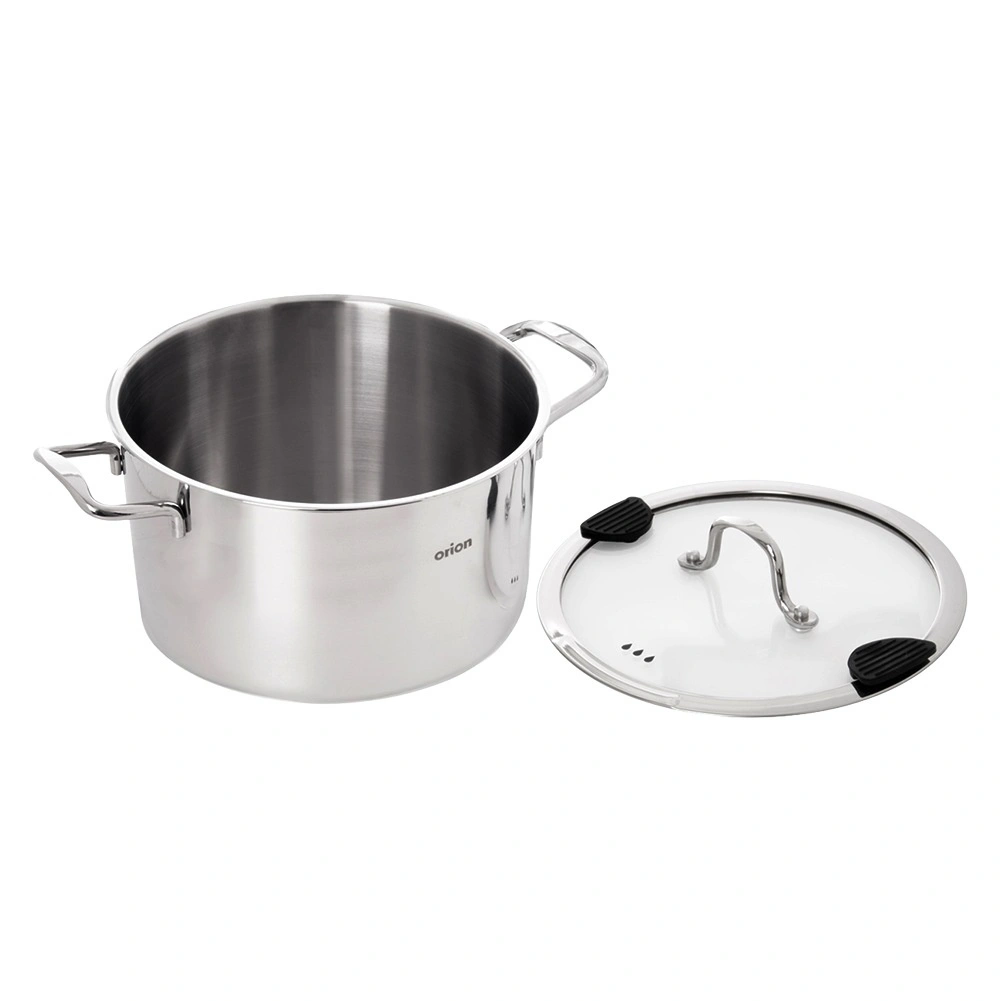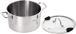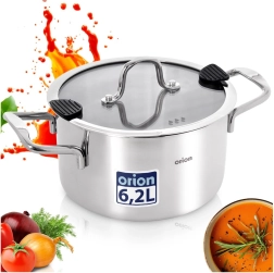 Velký univerzální hrnec z kvalitní nerezové oceli s průměrem 24 cm a objemem 6,2 l pro každodenní vaření. Má skleněnou poklici s praktickou výlevkou a silikonovými prvky pro bezpečné slití vody. Díky vícevrstvému dnu s hliníkovým jádrem rovnoměrně rozvádí teplo, je vhodný na plyn, elektřinu, sklokeramiku i indukci a lze jej použít i v troubě do 200 °C. Odolná nerez 304, snadná údržba a možnost mytí v myčce.