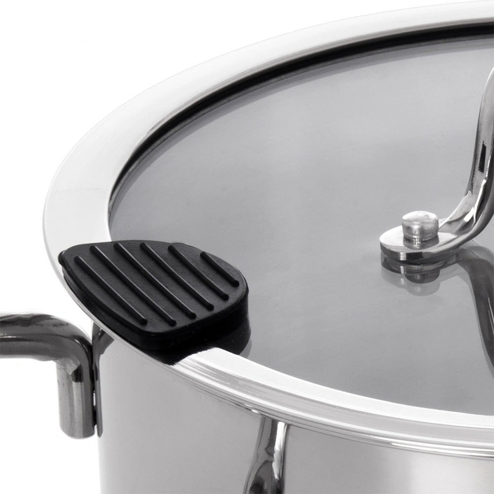 - Skleněná poklice s výlevkou a silikonem – bezpečné cezení a kontrola nad průběhem vaření.