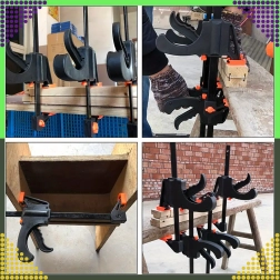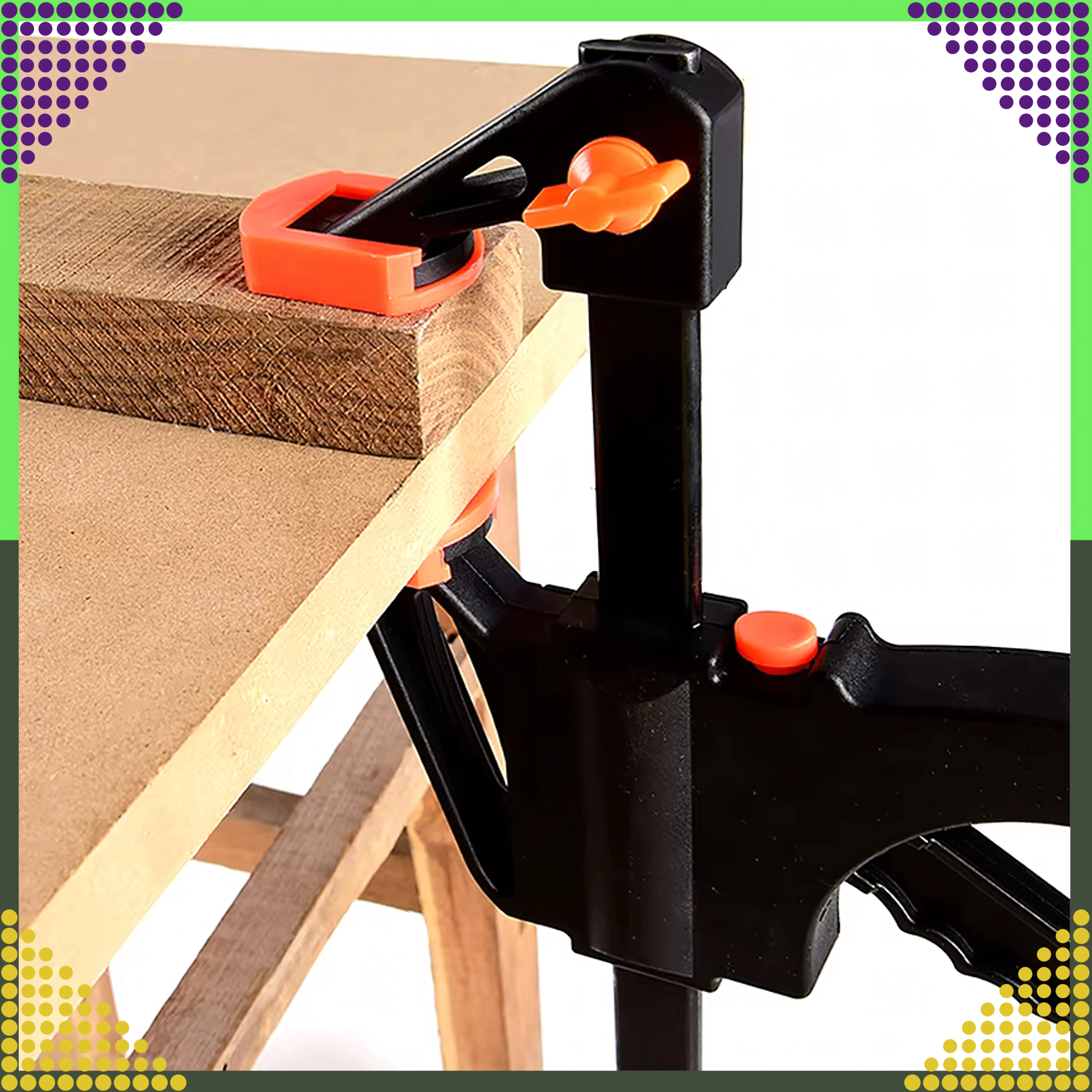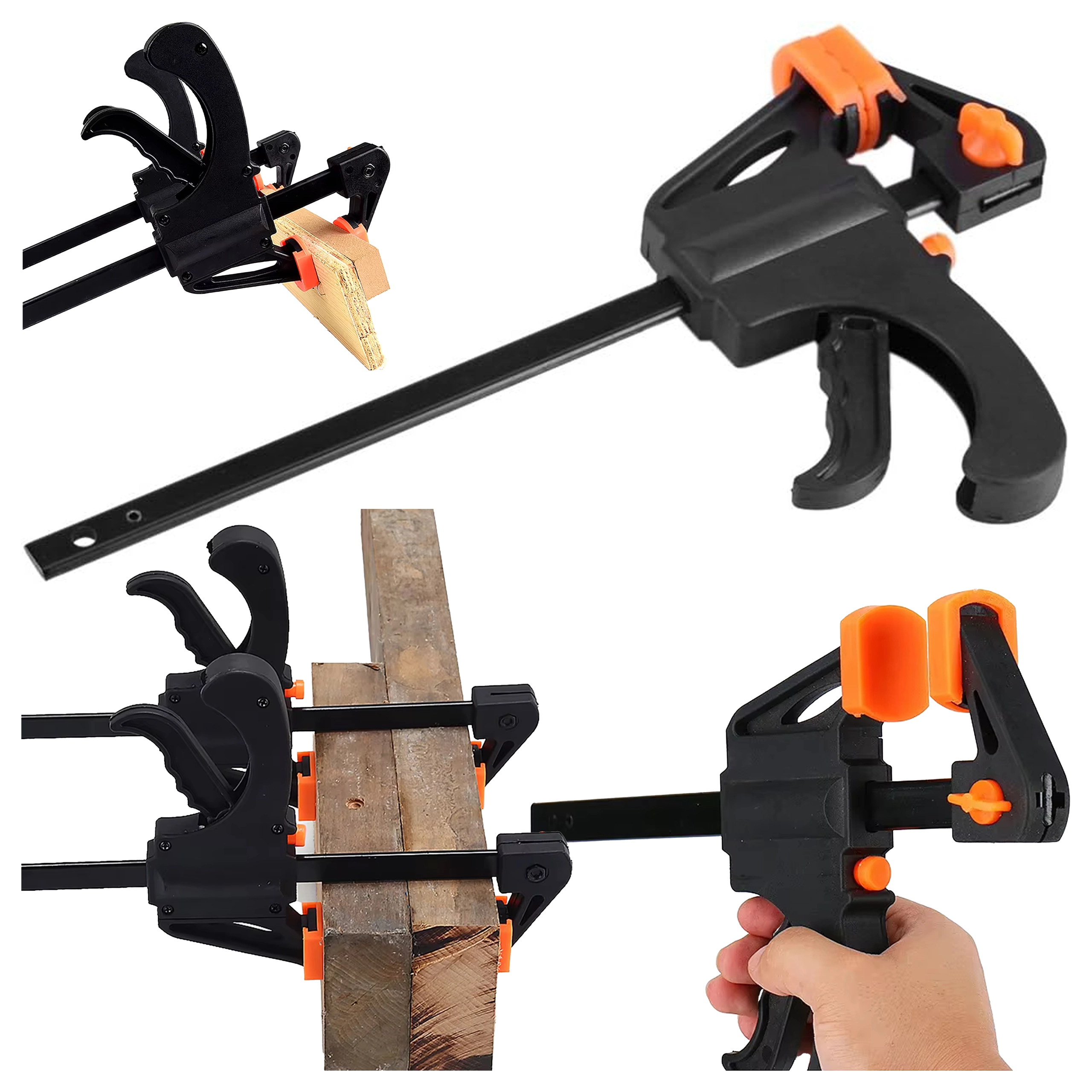 Tato robustní svěrka kombinuje odolný kovový vodič s pevným plastovým tělem pro dlouhou životnost a spolehlivý výkon při lepení, montáži i jemných dokončovacích pracích. Ergonomická spoušť zajišťuje plynulé a silné dotažení jednou rukou, zatímco měkčené krytky čelistí chrání obrobek před otlaky a škrábanci.