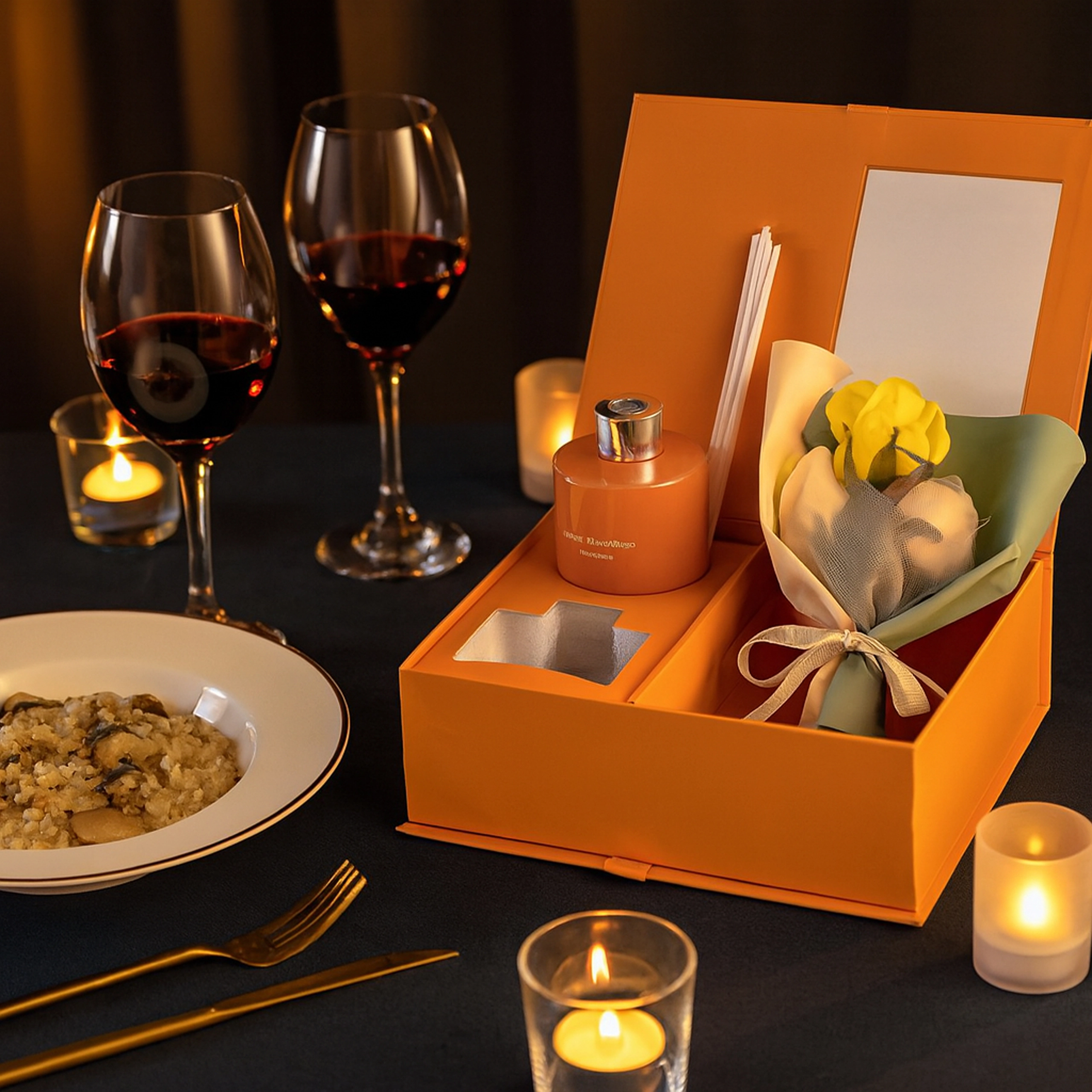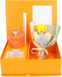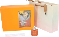 Tato stylová dárková sada je promyšlená tak, aby okouzlila na první pohled i první nadechnutí. Skleněný difuzér s ratanovými tyčinkami šíří příjemnou pomerančovou vůni, která navodí klidnou atmosféru v ložnici, koupelně i pracovně. Součástí je elegantní dárková krabička s okénkem a vkusná dekorativní kytička růží – připraveno ihned k předání.