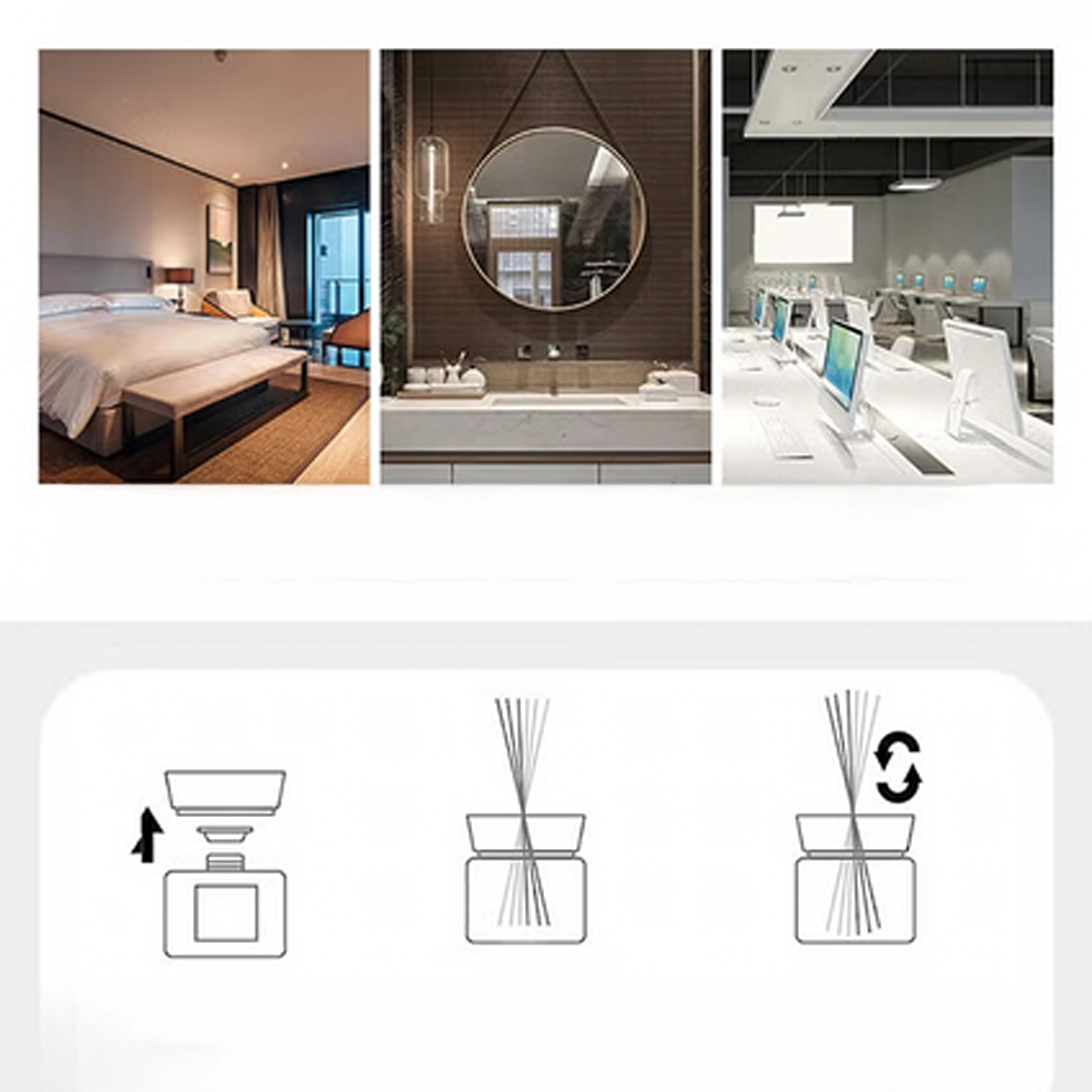 Ratanové tyčinky postupně uvolňují vůni bez potřeby plamene či zásuvky. Vhodné do ložnice, koupelny i kanceláře; pro obnovu intenzity stačí tyčinky otočit.