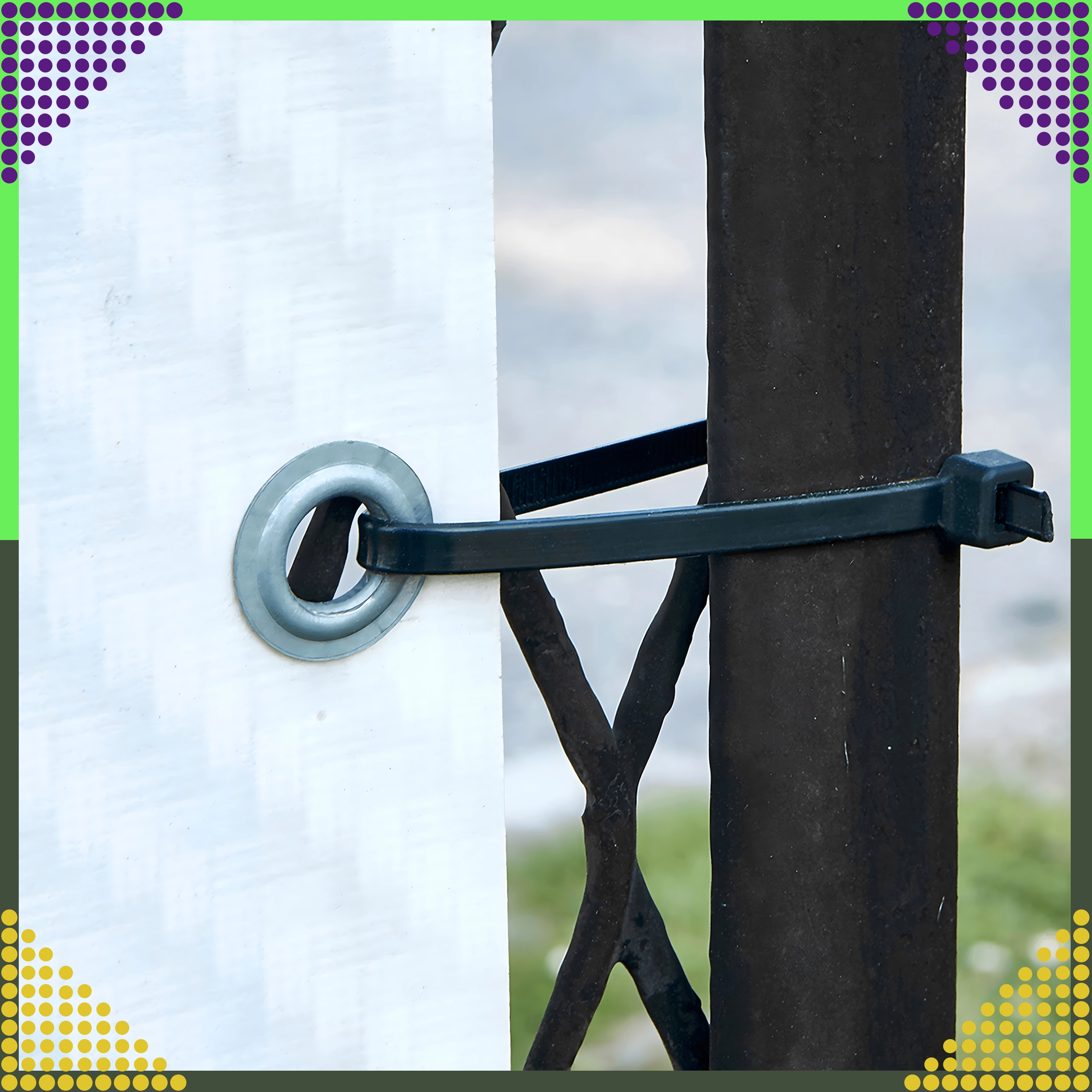 - Široké využití: kabely, hadice, trubky, zahradní opory, rychlé opravy.