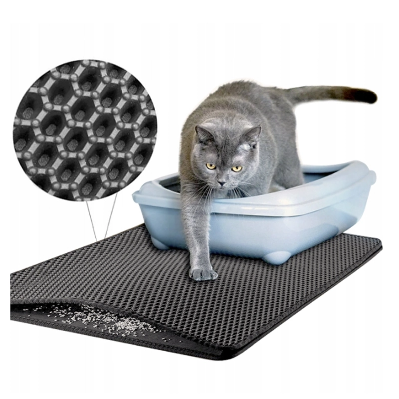 Ukončete nepořádek kolem kočičí toalety. Tato šedá podložka s voštinovou (honeycomb) strukturou účinně zachycuje rozsypané granule a prach ze steliva, takže podlaha zůstává čistá. Voděodolná horní vrstva a uzavřená spodní kapsa zabraňují pronikání vlhkosti na podlahu.