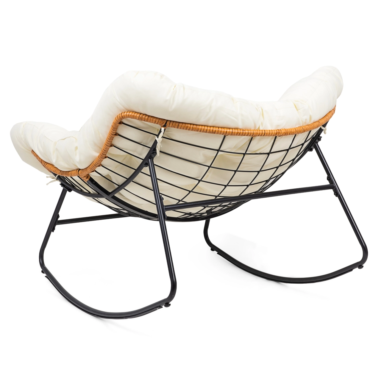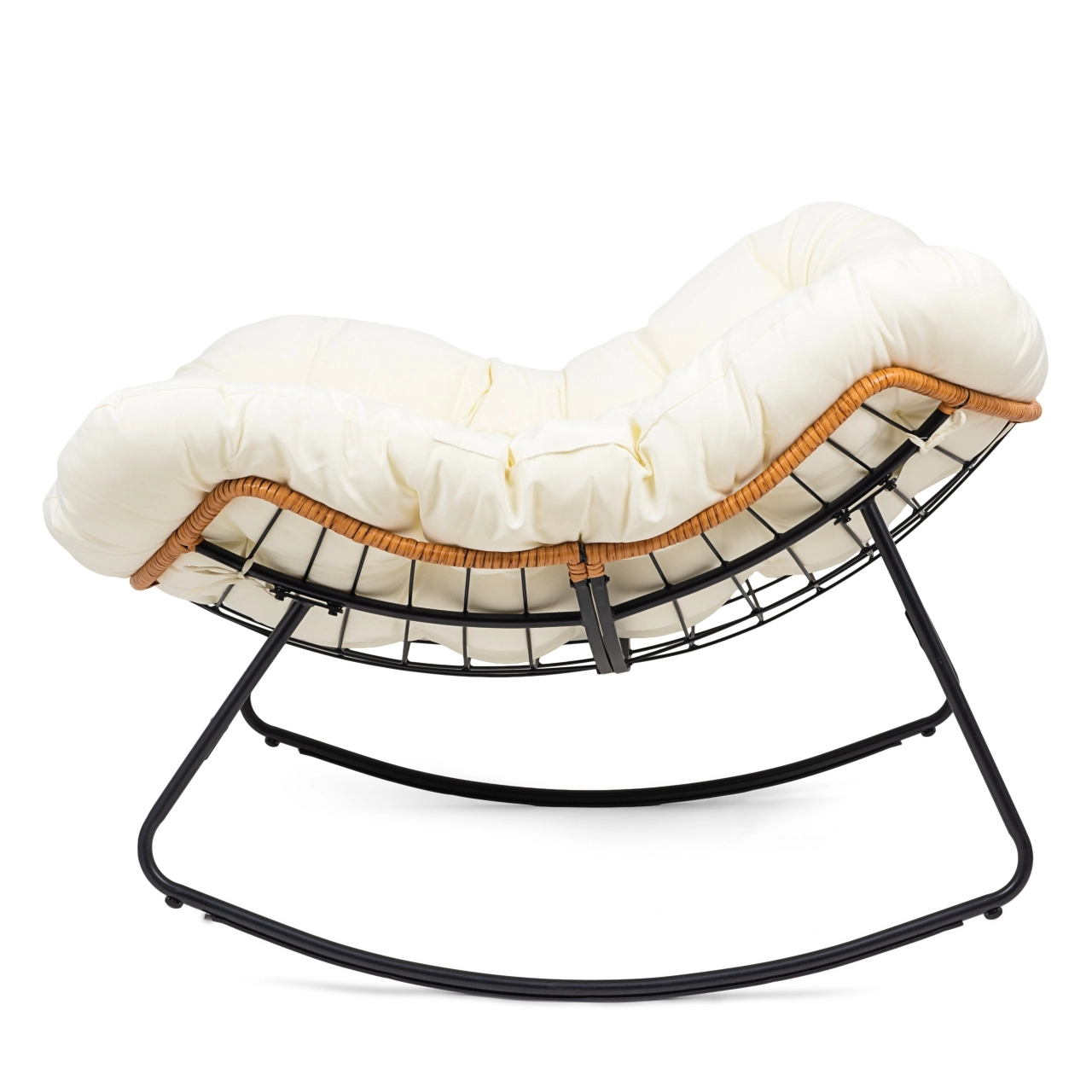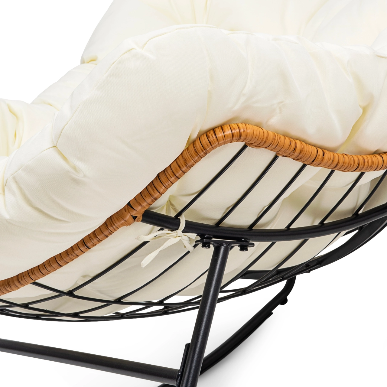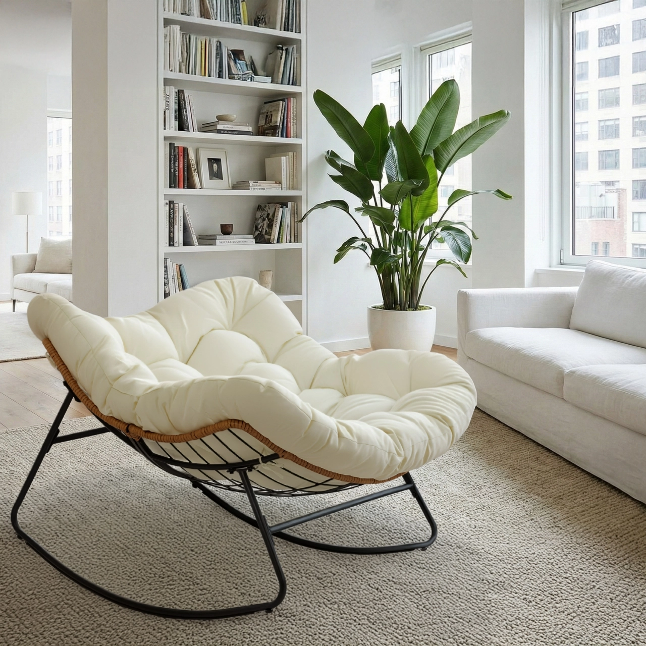 Objevte svou soukromou relax zónu: houpací křeslo v XL velikosti nabízí hluboké, hnízdové pohodlí, jemné houpání pro čtení i odpočinek a neutrální béžovou, která snadno zapadne do každého interiéru. Stabilní kovová konstrukce, měkký prošívaný polštář a vzdušná openwork skořepina s ratanovým akcentem podtrhnou lehkost scandi estetiky.