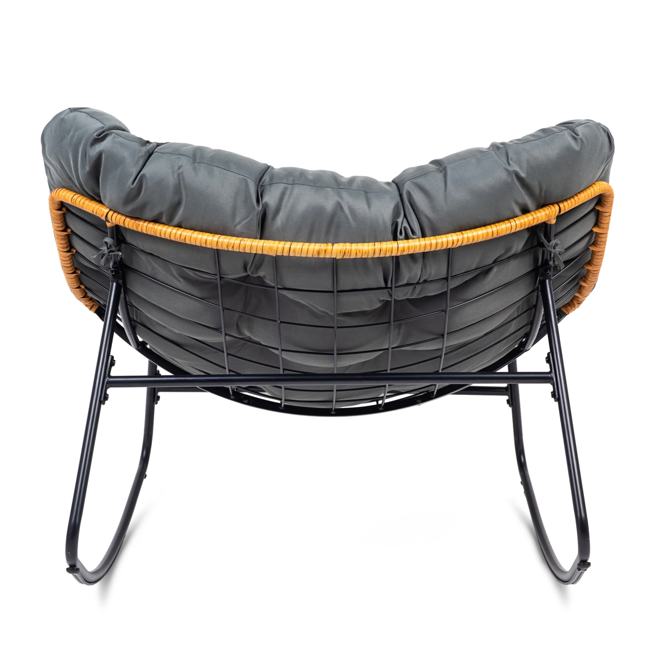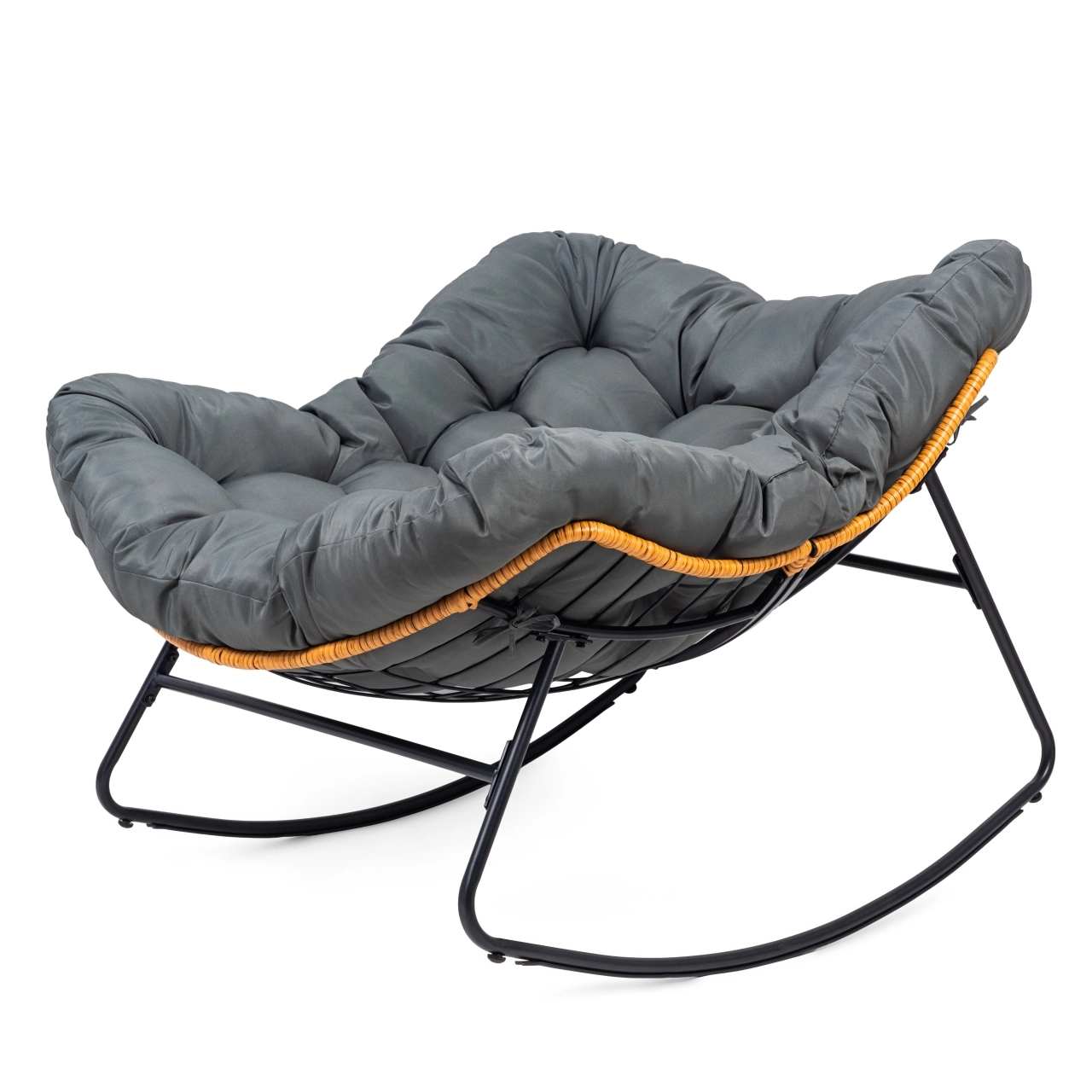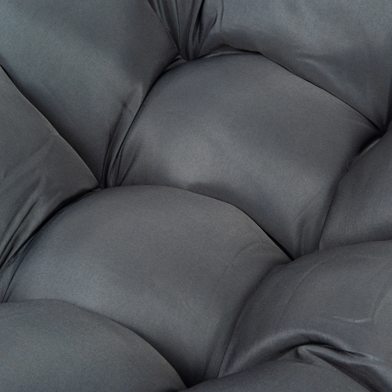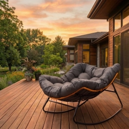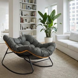 Udělejte si doma vlastní relaxační zónu. Toto houpací křeslo XL nabízí hluboké a prostorné sezení, měkký prošívaný polštář a jemný houpavý pohyb, který pomáhá uvolnit tělo i mysl. Neutrální šedá snadno ladí s dřevem, černým kovem i přírodními doplňky a díky vzdušné konstrukci nepůsobí těžkopádně ani v menších místnostech.
