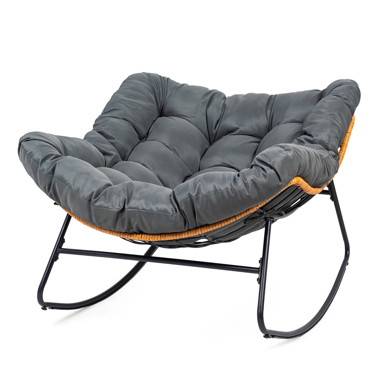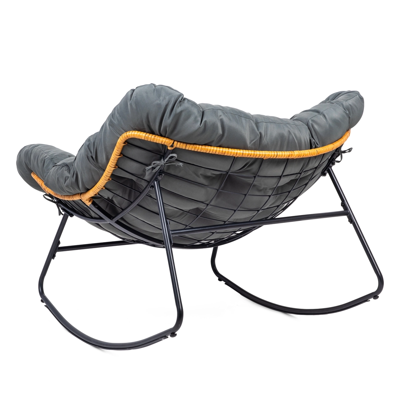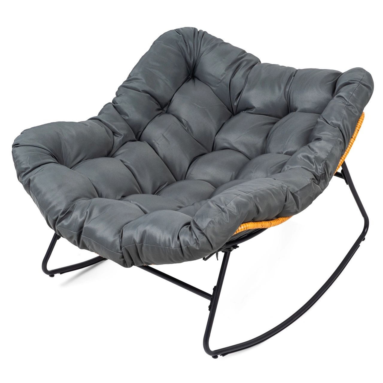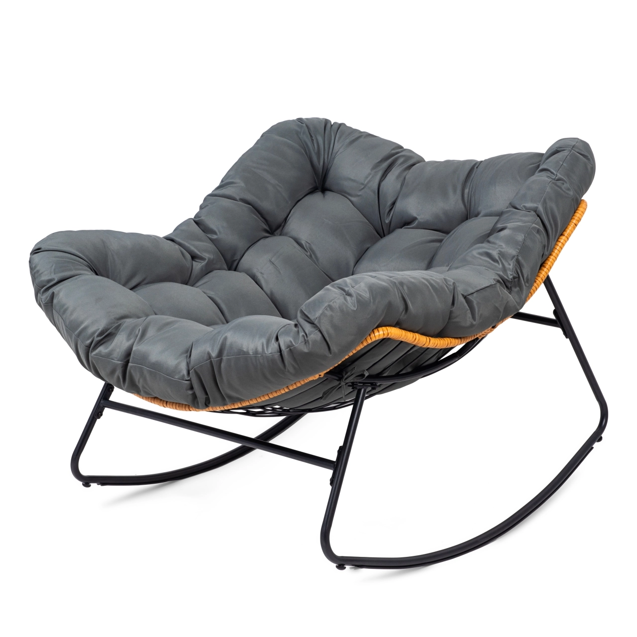 Udělejte si doma vlastní relaxační zónu. Toto houpací křeslo XL nabízí hluboké a prostorné sezení, měkký prošívaný polštář a jemný houpavý pohyb, který pomáhá uvolnit tělo i mysl. Neutrální šedá snadno ladí s dřevem, černým kovem i přírodními doplňky a díky vzdušné konstrukci nepůsobí těžkopádně ani v menších místnostech.