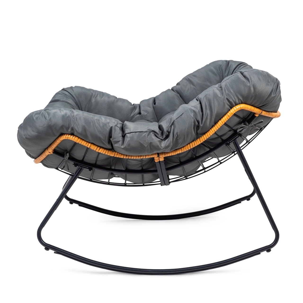Skandinávské houpací křeslo XL je navržené pro maximální pohodlí i styl. Široké a hluboké sedadlo s vysokým, prošívaným polstrováním vás příjemně obejme, zatímco profilované běžce zajistí plynulé a kontrolované houpání. Otevřená drátěná skořepina s ratanovým efektem lemu působí lehce a moderně.