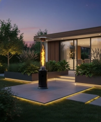 Tento vysoký venkovní ohřívač kombinuje silný výkon a elegantní vzhled. Skleněná trubice s tančícím plamenem vytváří jedinečnou atmosféru, která zaujme hosty i návštěvníky, a zároveň účinně sálá teplo do všech stran. Robustní tělo z práškově lakované oceli je odolné vůči povětrnosti a každodennímu používání.