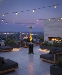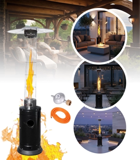 Díky nastavitelnému výkonu 5000–12500 W snadno přizpůsobíte intenzitu ohřevu aktuálním podmínkám. Široká, stabilní základna a ochranné prvky kolem plamene zvyšují bezpečnost obsluhy i pohodlí uživatelů. Ideální pro terasové posezení, zahradní altány, restaurační zahrádky nebo eventové zóny.