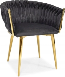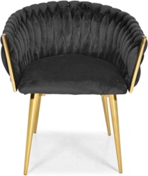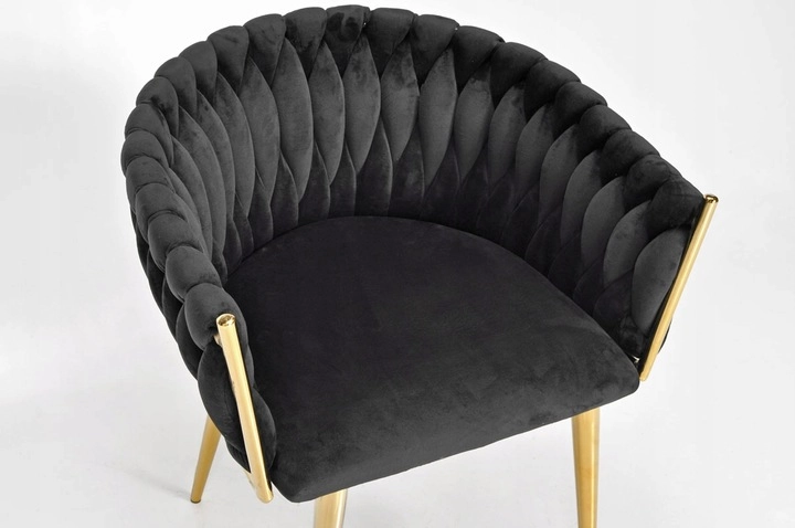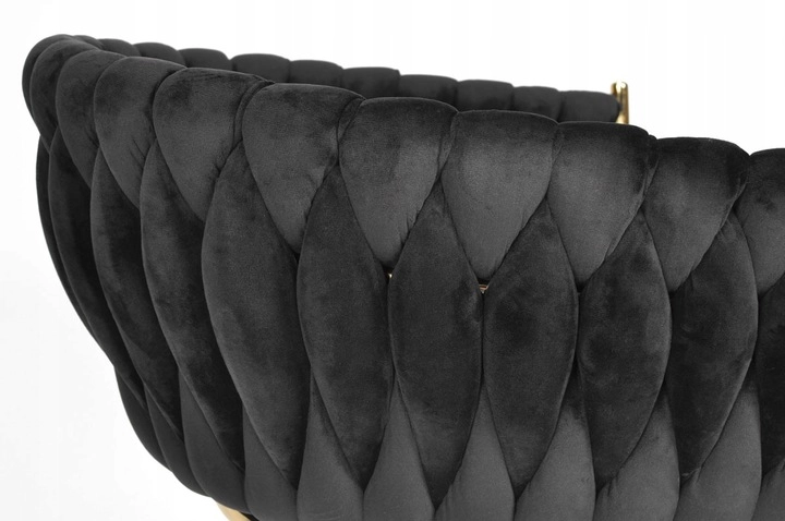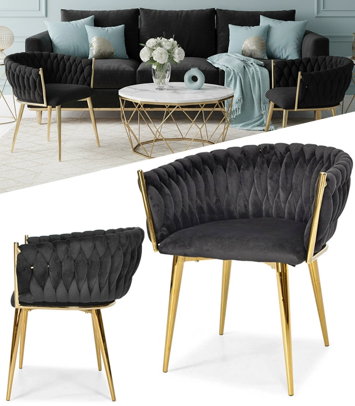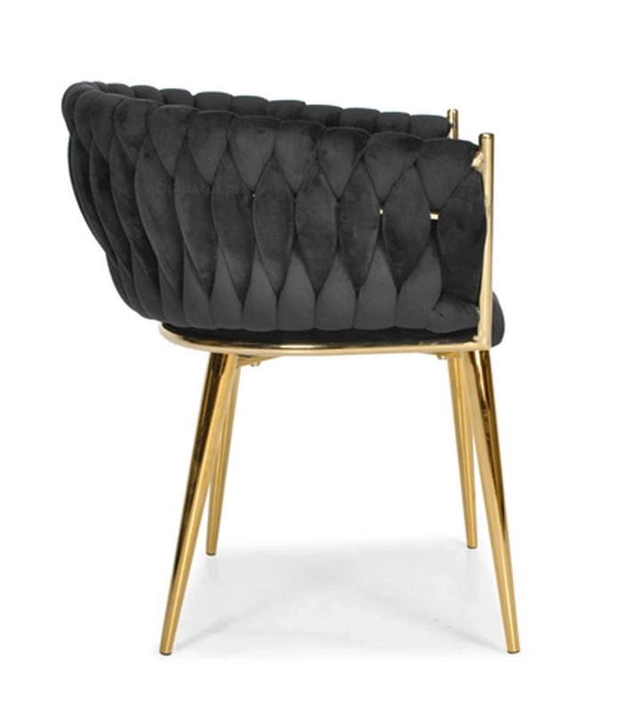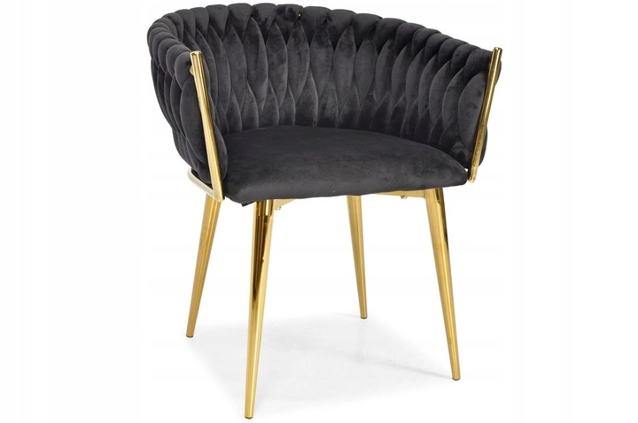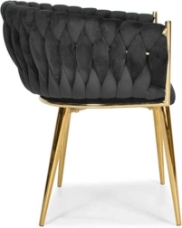 Propracované, pletené prošívání opěradla příjemně objímá záda a spolu s měkkým, cca 7 cm silným sedákem zajišťuje pohodlí při delším sezení. Kovový rám ve zlatém provedení je zároveň pevný a stabilní s nosností až 130 kg.