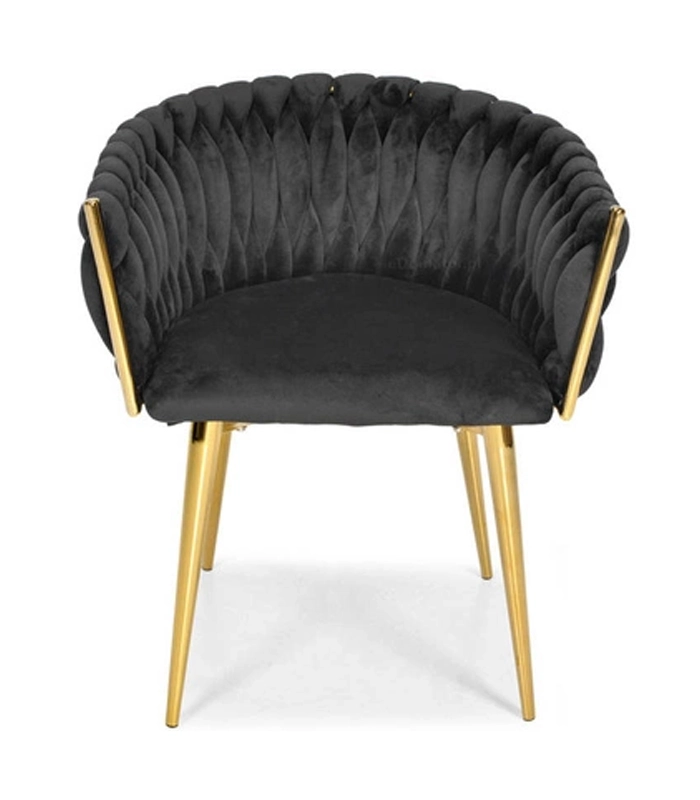 Tato čalouněná židle z měkkého veluru v černé barvě okamžitě pozvedne vzhled jídelny, obýváku i pracovny. Sametový povrch jemně odráží světlo a dodává nábytku prémiový vzhled, zatímco zlaté nohy podtrhují moderní glamour styl.