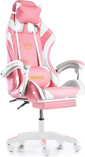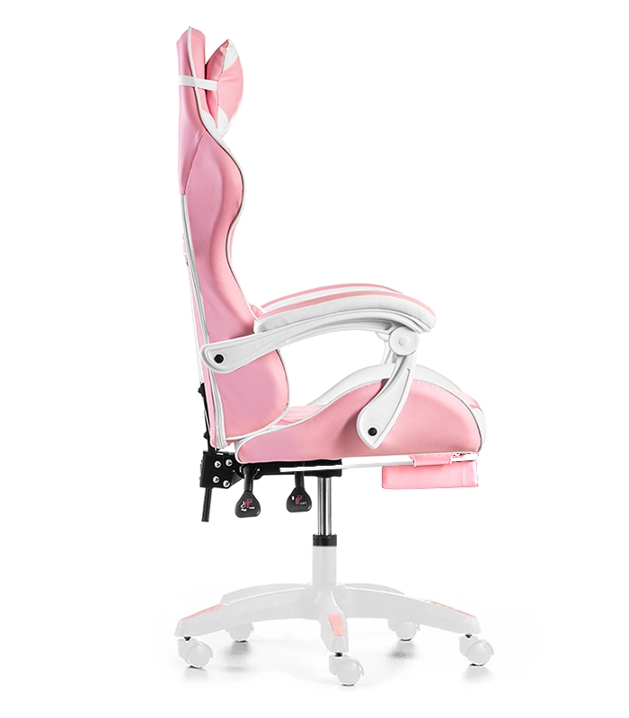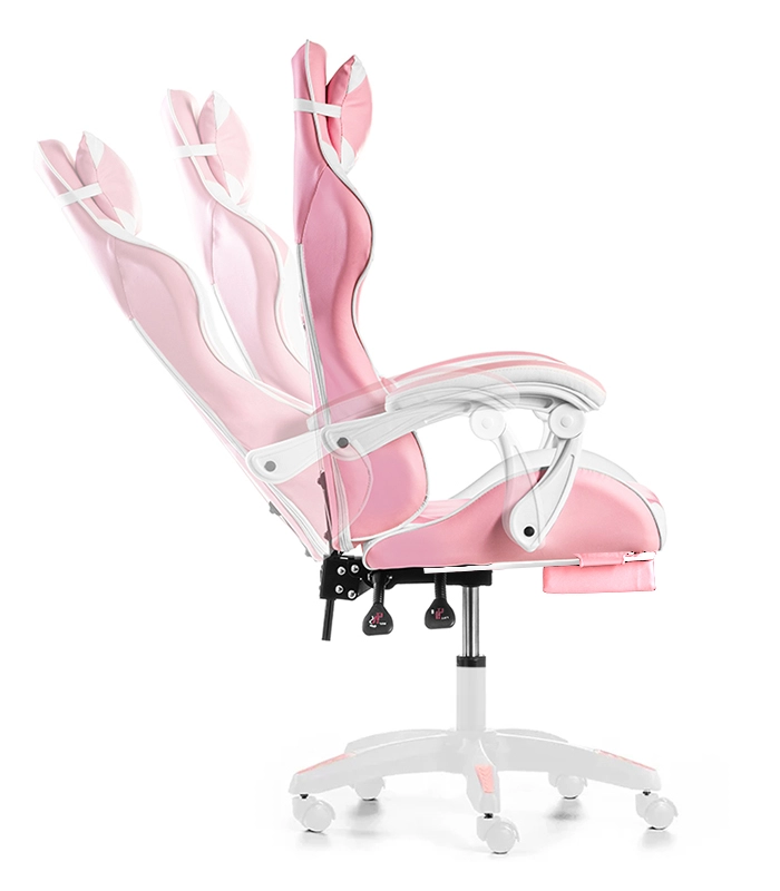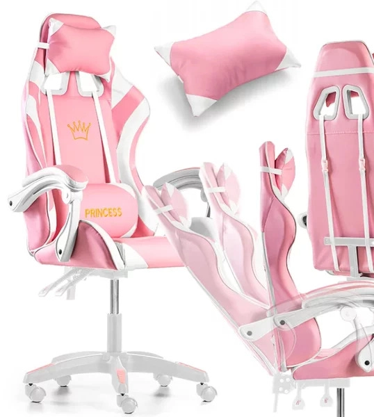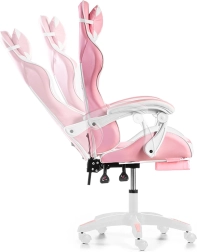 Židle nabízí vícestupňové nastavení: plynulé zvedání sedáku, polohování opěradla s možností blokace a funkci houpání. Odolná a snadno udržovatelná ekokůže v růžovo-bílém provedení dodá vašemu hernímu či kancelářskému prostoru moderní vzhled, zatímco stabilní pětiramenná základna se samostatnými kolečky zajistí bezpečí a volnost pohybu.