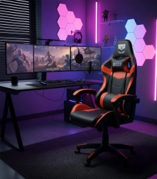 Stylové herní křeslo s ergonomickou kubečkovou konstrukcí, nastavitelným opěradlem až do 145°, funkcí houpání s blokací a polštářky pro krk i bedra. Odolné čalounění z PVC eko kůže, stabilní pětiramenná základna a plynulá regulace výšky zajistí pohodlí při hraní i práci. Nosnost 120 kg, tichá kolečka vhodná na panely i dlažbu.