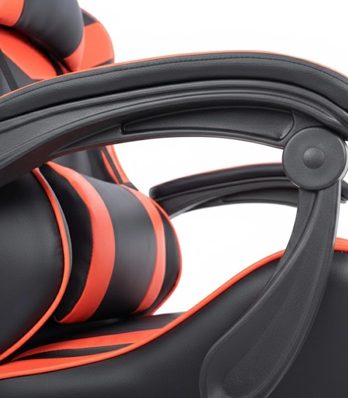 Užijte si dlouhé herní i pracovní seance bez únavy zad. Toto herní křeslo kombinuje sportovní vzhled s promyšlenou ergonomií: vysoké opěradlo, tvarované boky a dva nastavitelné polštářky pro krční a bederní oblast uleví páteři a pomohou udržet zdravé držení těla. Čalounění z odolné PVC eko kůže se snadno čistí a drží tvar díky husté pěně.