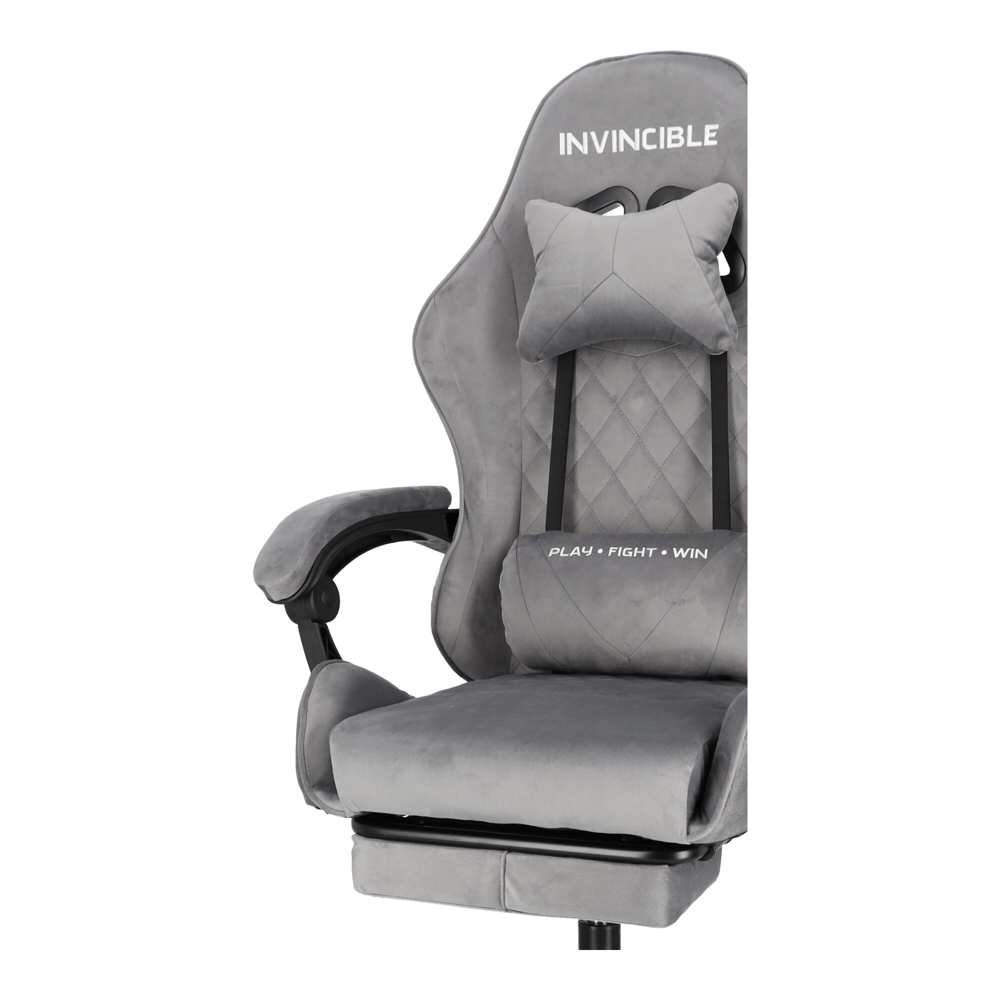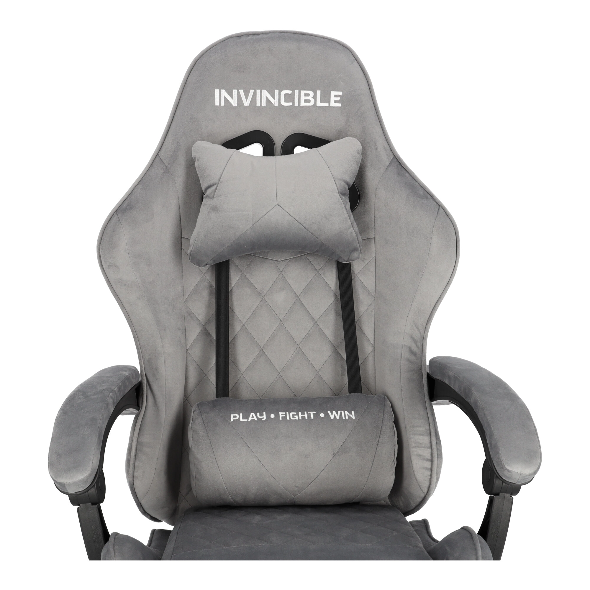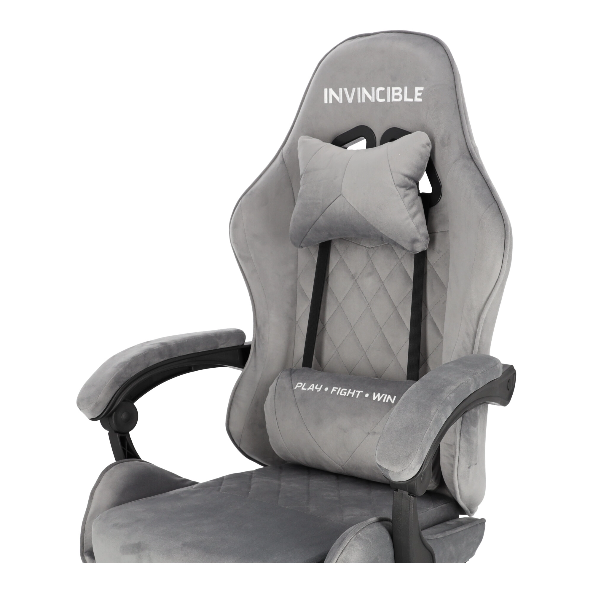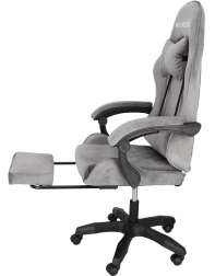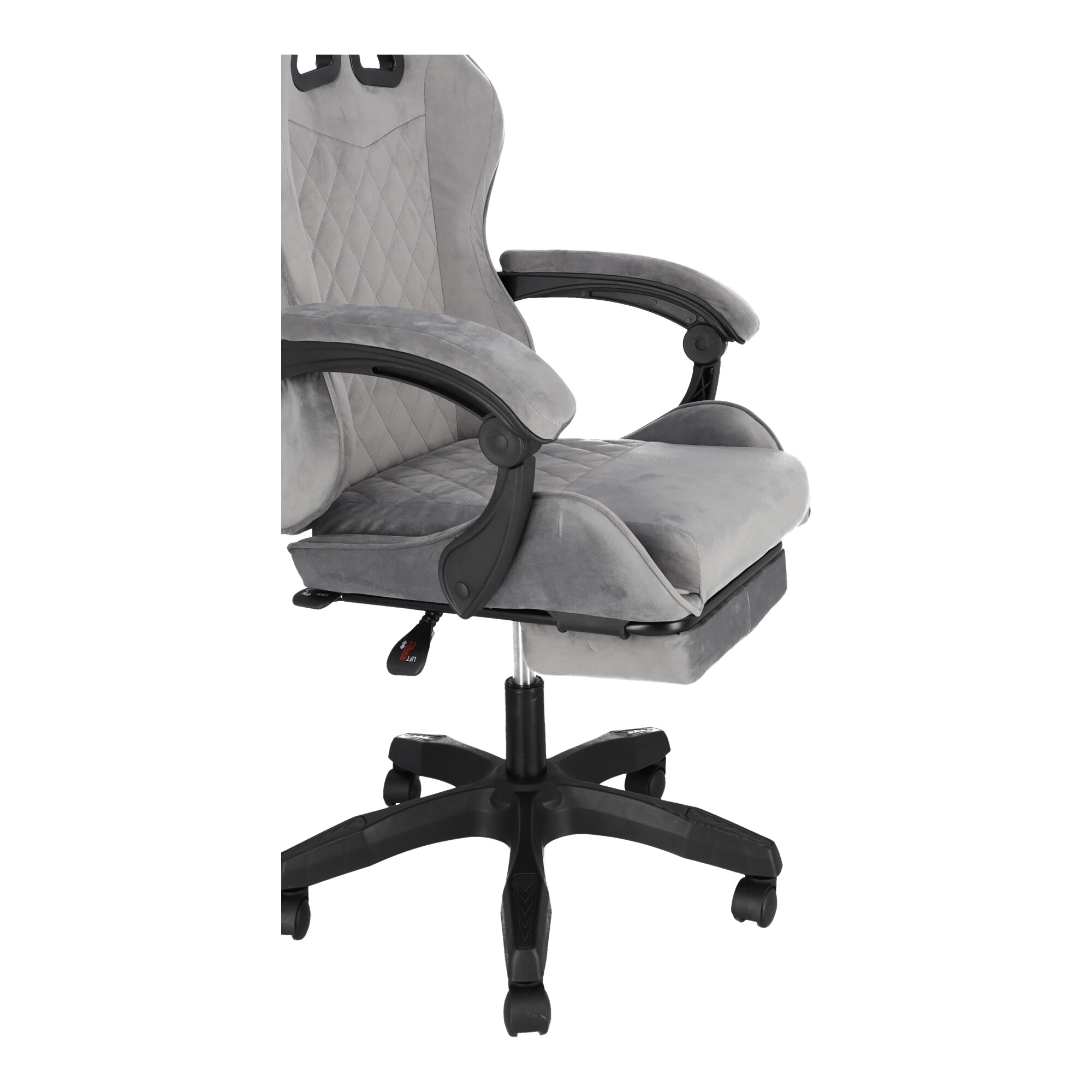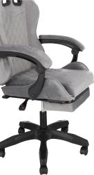Užijte si pohodlí a ergonomii v elegantním šedém provedení. Měkký velur je příjemný na dotek a působí moderně v herním koutku i domácí kanceláři. Křeslo typu „bucket“ drží tělo ve správné ose, zatímco nastavitelná výška sedáku a polštářky pro krk a bedra snižují únavu zad při dlouhém sezení.