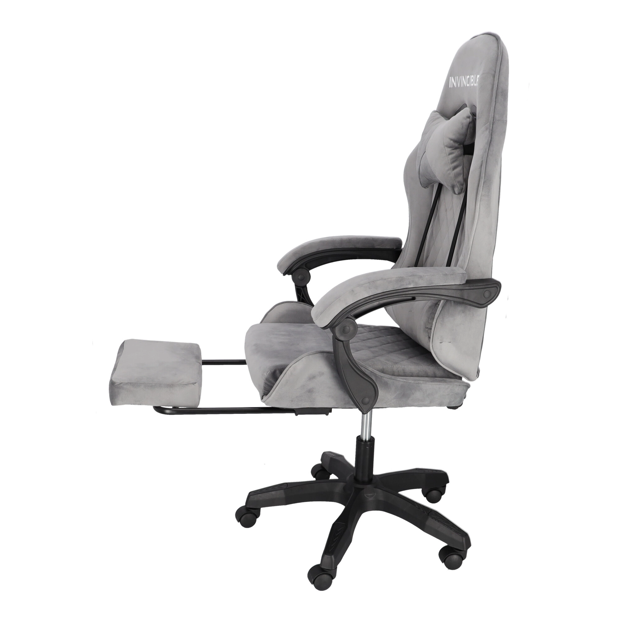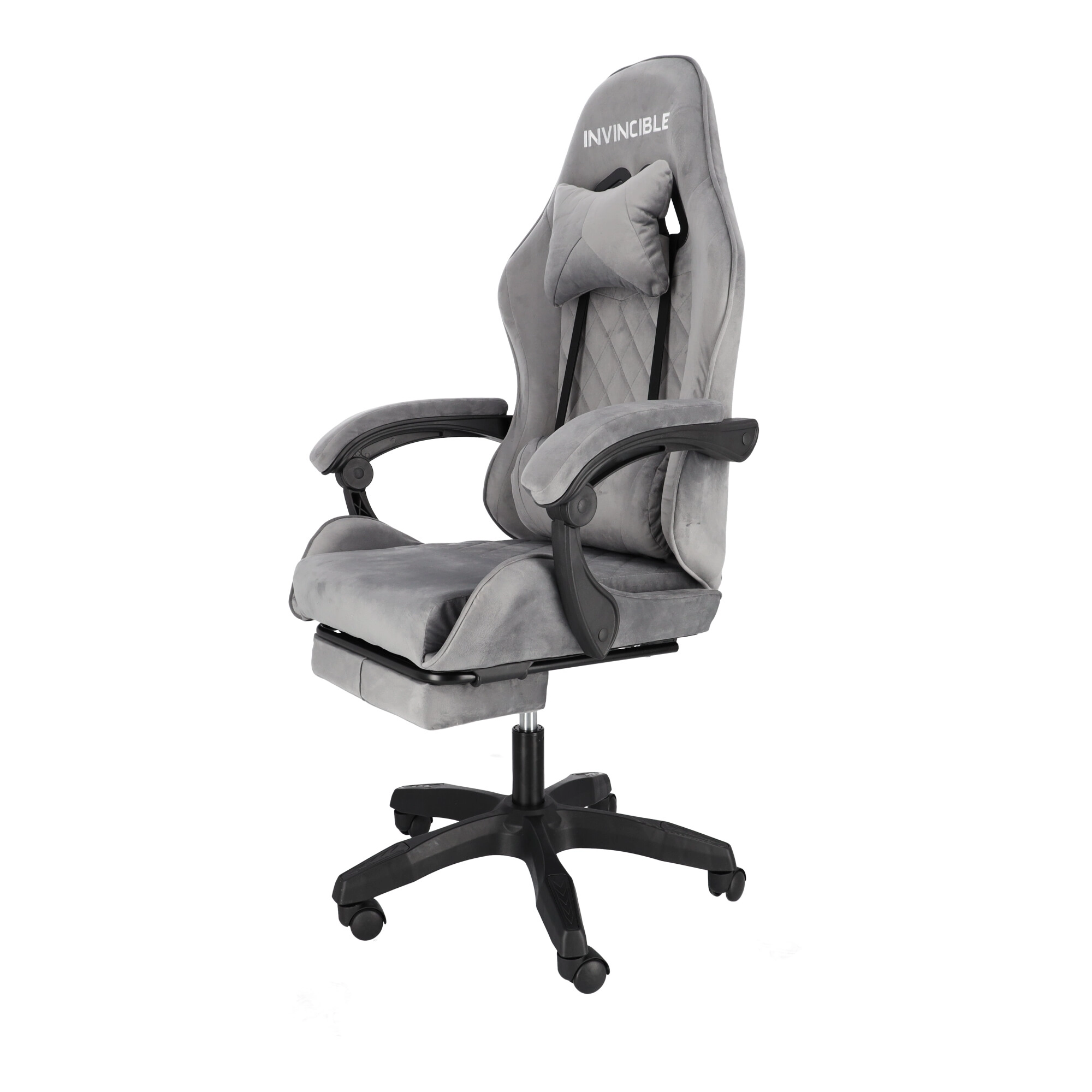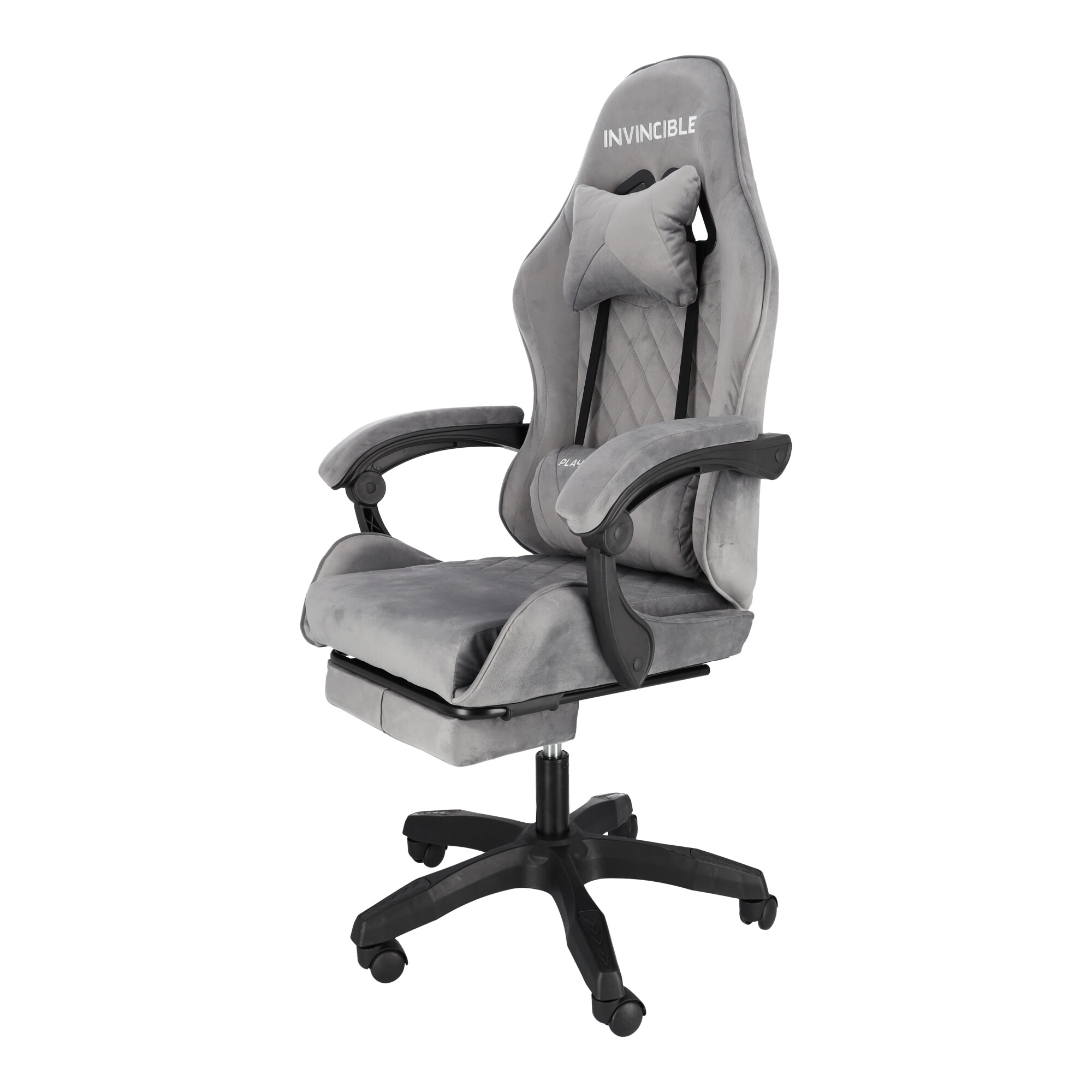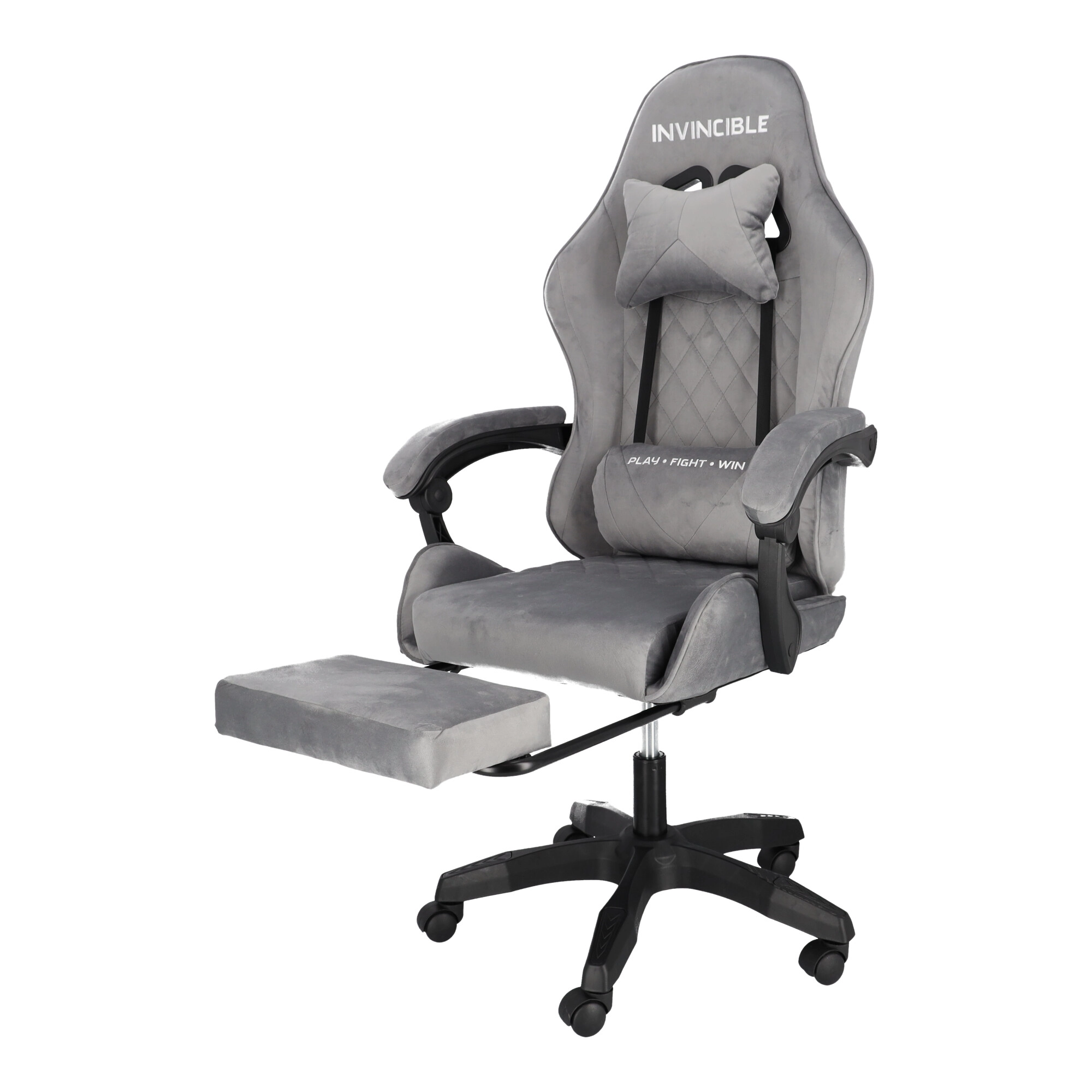 Užijte si pohodlí a ergonomii v elegantním šedém provedení. Měkký velur je příjemný na dotek a působí moderně v herním koutku i domácí kanceláři. Křeslo typu „bucket“ drží tělo ve správné ose, zatímco nastavitelná výška sedáku a polštářky pro krk a bedra snižují únavu zad při dlouhém sezení.