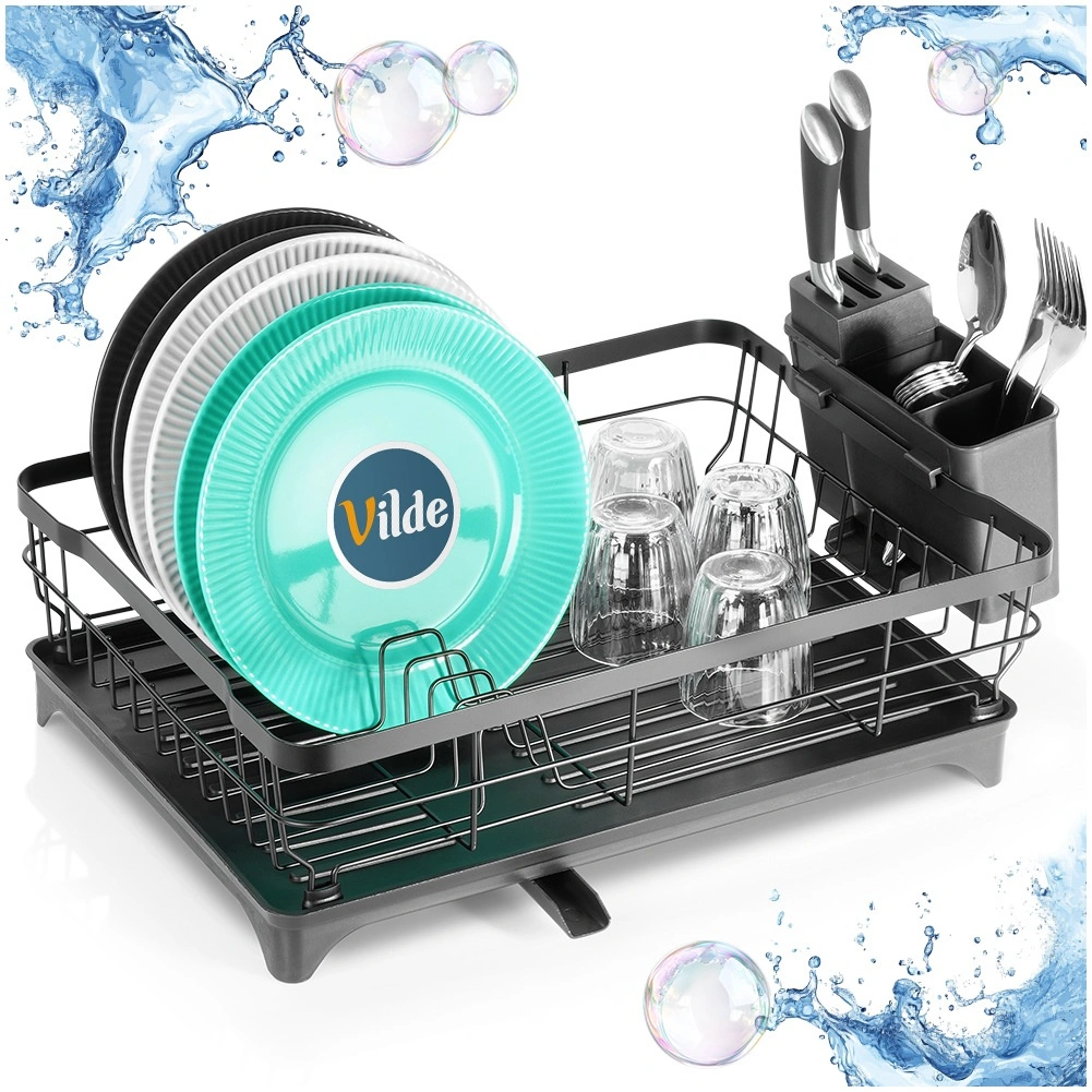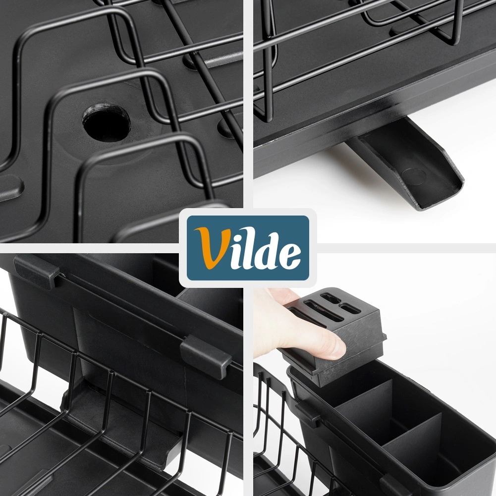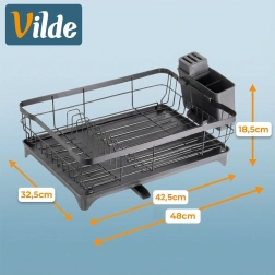 Integrovaná výlevka v misce zajišťuje kontrolovaný odtok vody přímo do dřezu, takže pracovní plocha zůstává bez mokrých stop. Odkapávač se hodí do každé kuchyně – od moderní po klasickou – a díky snadné údržbě ušetří čas každý den. Originální produkt značky VILDE, vyrobený v souladu s evropskými standardy.