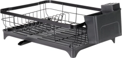 Odolný černý kov pojme až 10 talířů, sklenice a misky. Vyvýšené okraje zajišťují stabilitu a bezpečné ukládání nádobí.