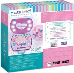 Objevte kouzlo líčení s přenosným kosmetickým studiem MAKE IT REAL. Ve víku kufříku najdete zrcátko ve tvaru srdce s bočním osvětlením, které zajistí perfektní přehled při nanášení líčení. Díky bohaté výbavě si děti mohou bezpečně a radostně zkoušet různé vzhledy a rozvíjet svou kreativitu.