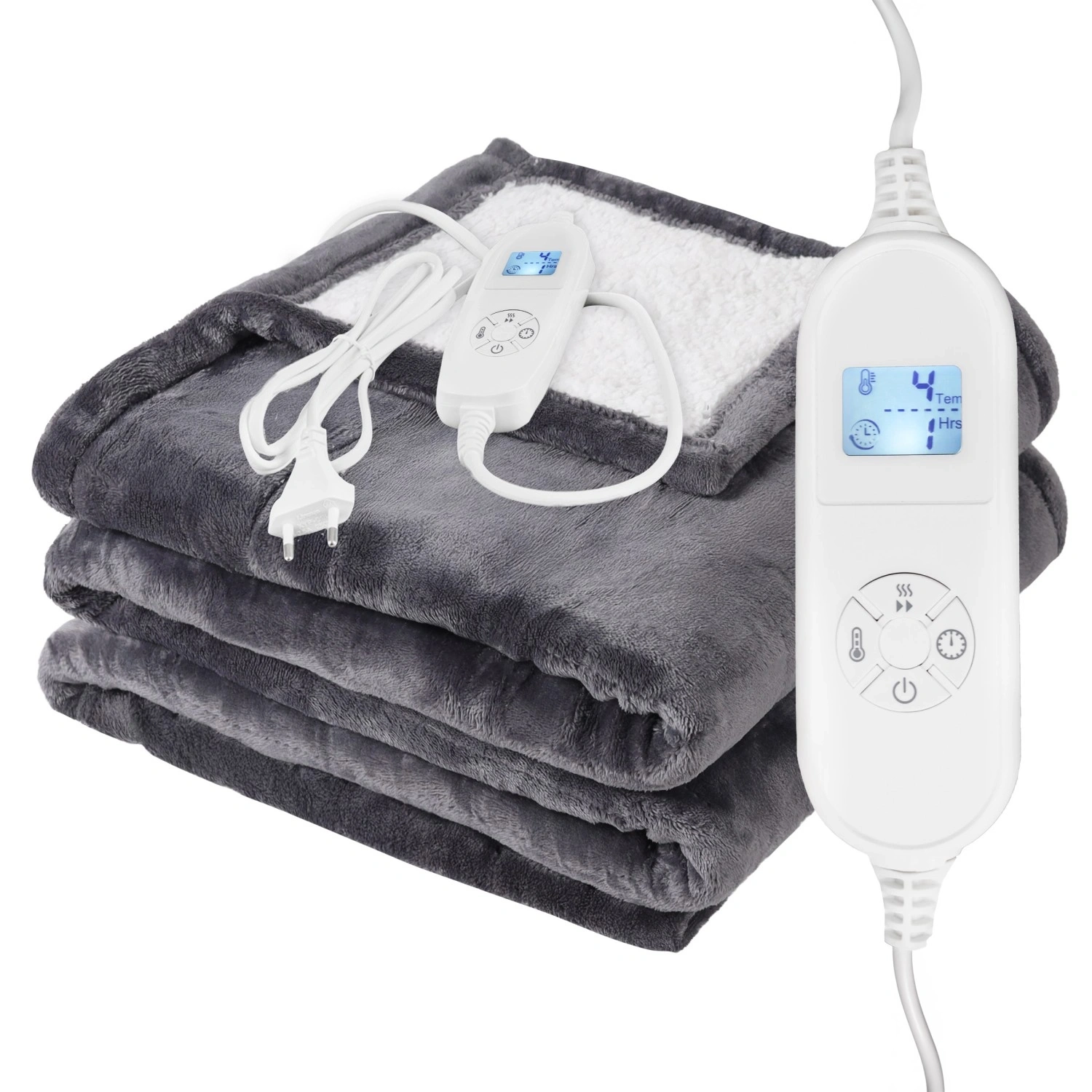 Ovládání je intuitivní pomocí dálkového ovladače s podsvíceným LED displejem, na kterém snadno zkontrolujete zvolenou teplotu i zbývající čas. Měkký plyšový povrch z odolného polyesteru je příjemný k pokožce a zároveň snadno udržovatelný – po odpojení kabelu a ovladače lze deku prát na 30 °C.