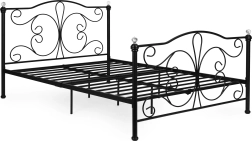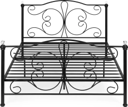 Tato kovová postel v nadčasové černé barvě snadno zapadne do moderních, klasických i romantických ložnic. Integrovaný lamelový rošt s centrálními oporami poskytuje rovnoměrné větrání a podporu matrace, zatímco pevná kovová konstrukce s práškovým lakem zaručuje odolnost proti poškrábání a korozi.